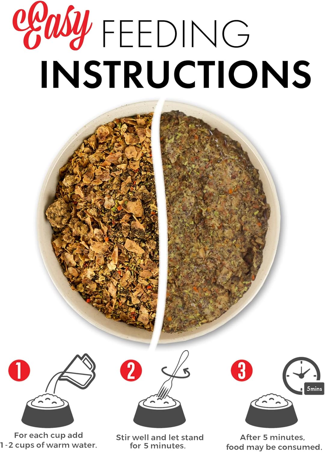 • Grain-free, freeze-dried recipe is made in small batches in California to ensure quality and consistency, with corn, wheat, soy, meat meals or by-products.