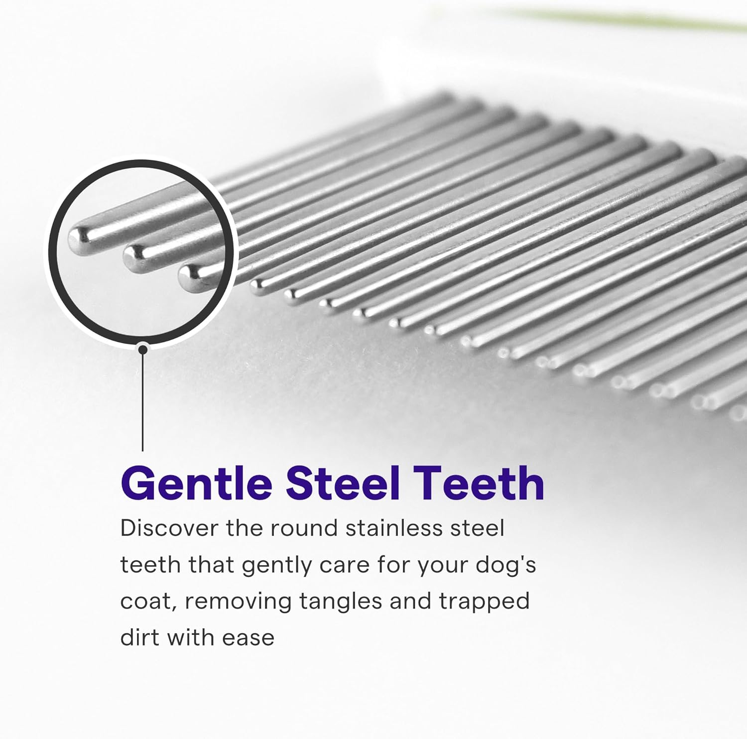 Dog & Cat Comb – Removes Tangles, Knots, and Matted Fur – Grooming Tool with Stainless Steel Teeth and Non-Slip Handle – Best Pet Hair Comb for Home Grooming Kit – Includes eBook Guide