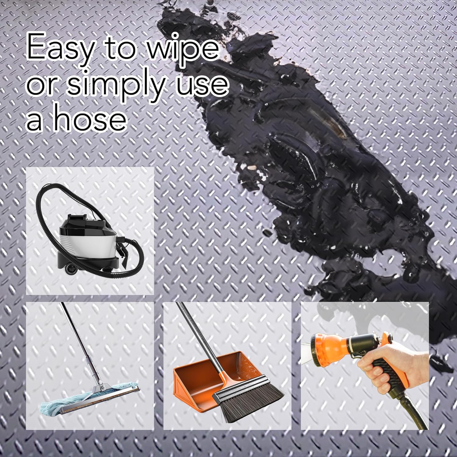 • THE DAMAGE-DEFYING SOLUTION TO SPILLS & STAINS: Safeguard your indoor/outdoor flooring from stubborn grease, rust, oil spills, tire skids, leaks, and more with our durable vinyl mat, designed to deliver unbeatable protection against costly damage