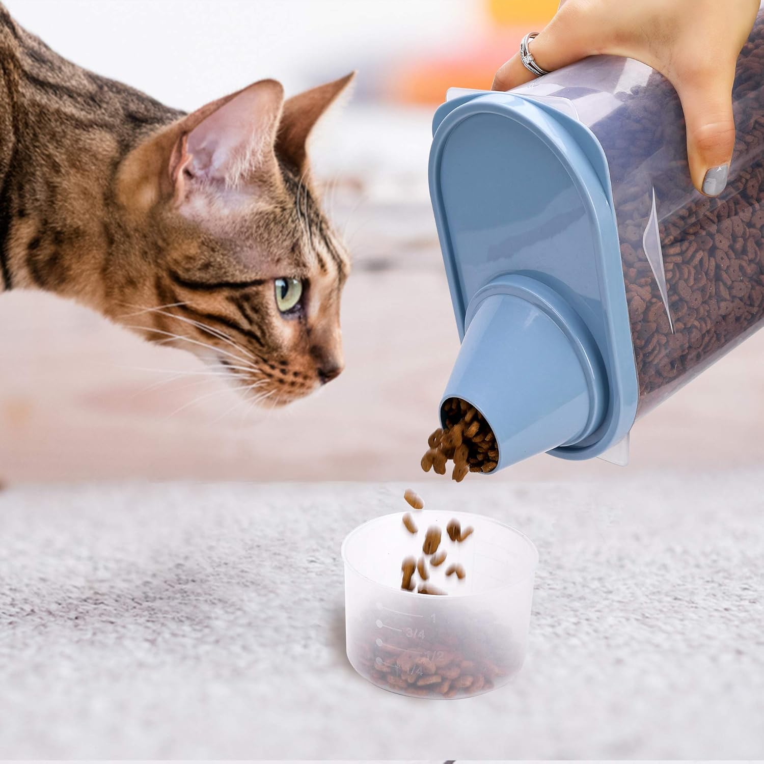 • [THE SHAPE OF FOOD STORAGE]- Designed for easy access to pet food for pouring.And the translucent body makes food be checked at a glance.