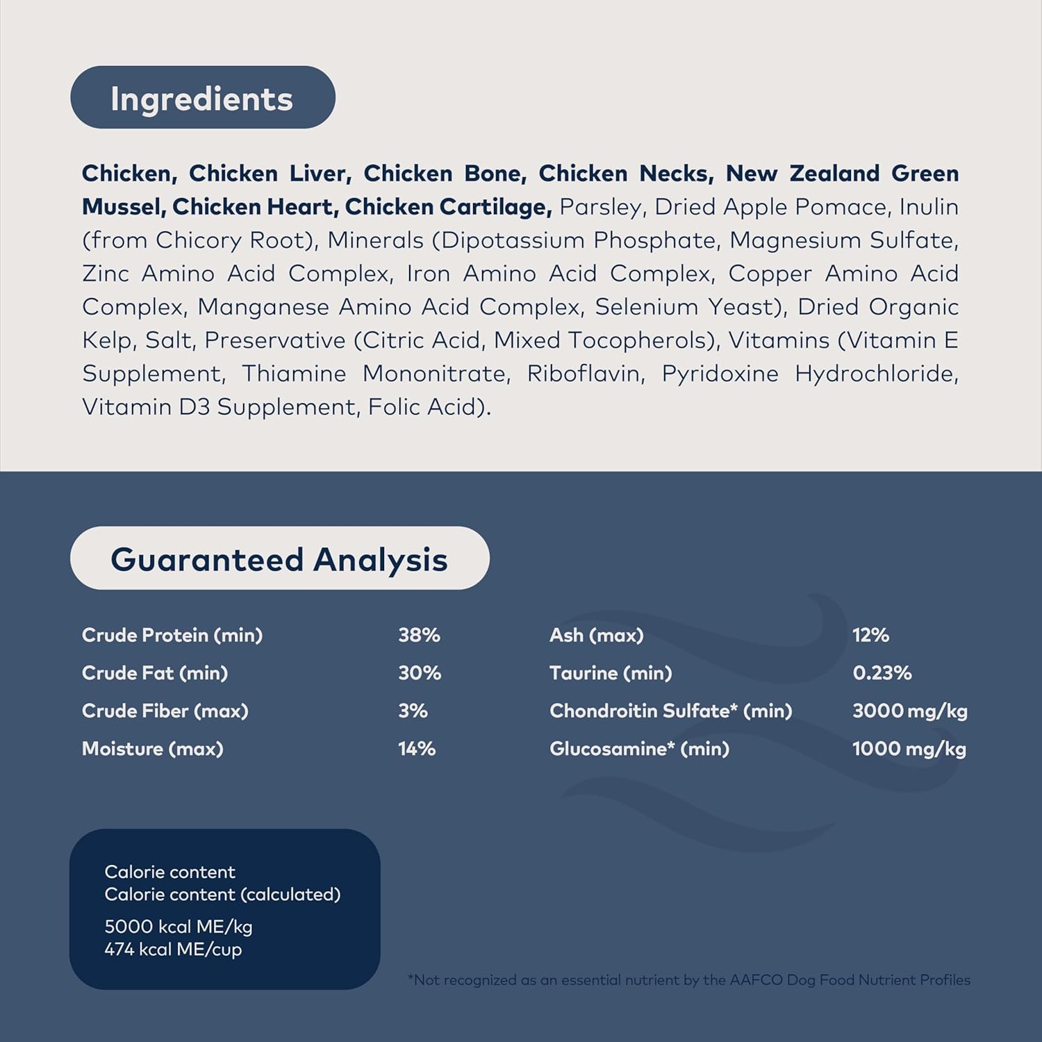 • HIGH PROTEIN, NUTRIENT DENSE: Featuring free-range Chicken, Organs, Bone, and New Zealand Green Mussels, this grain-free dog food delivers nutrition with a mouth-watering taste for all dogs. Gentle air dried processing retains the goodness of the raw ingredients. This food offers stimulating crunchy texture small enough for puppy food but soft enough for senior dog food.