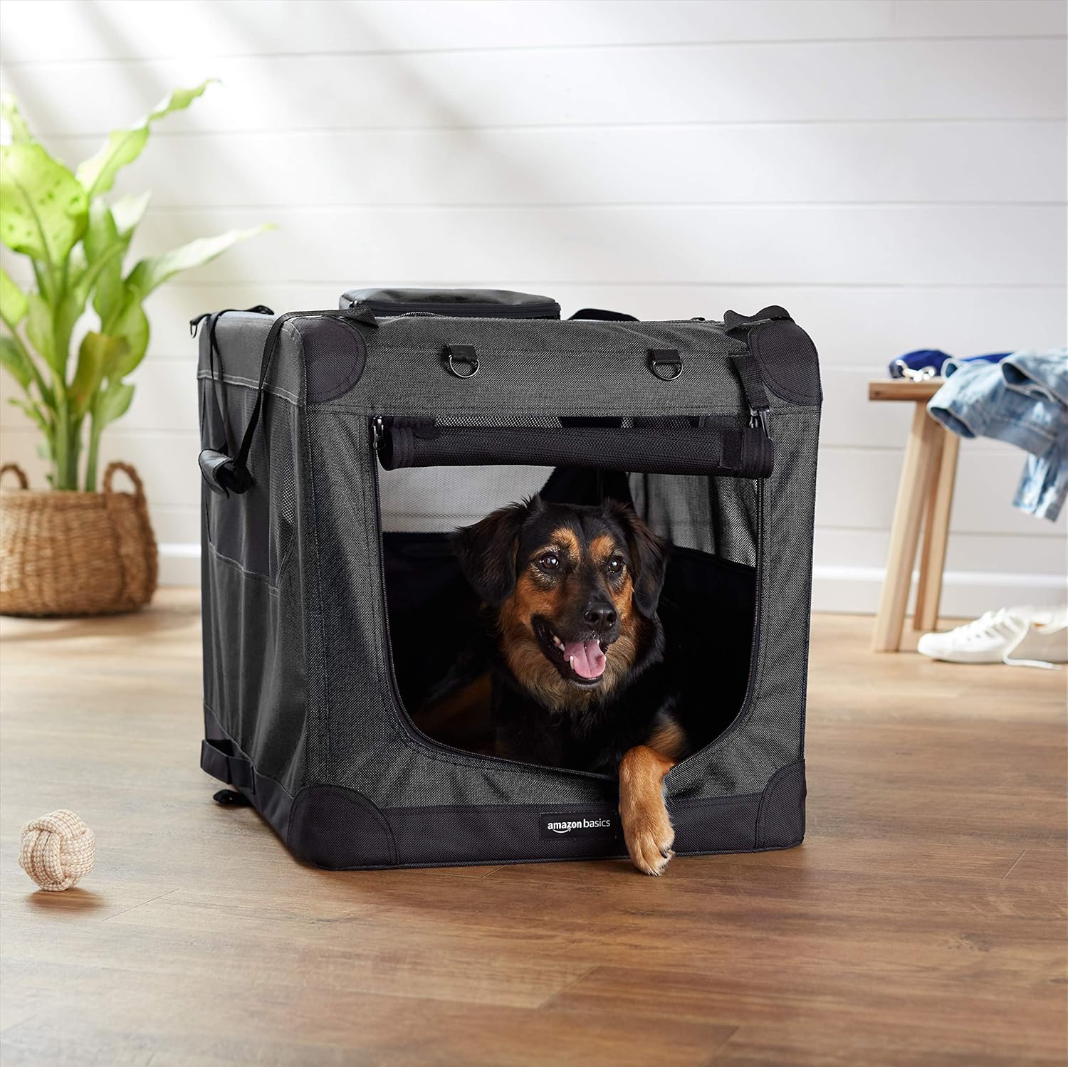 Amazon Basics Folding Portable Soft Pet Dog Crate Carrier Kennel, 30 x 21 x 21 inches, Black