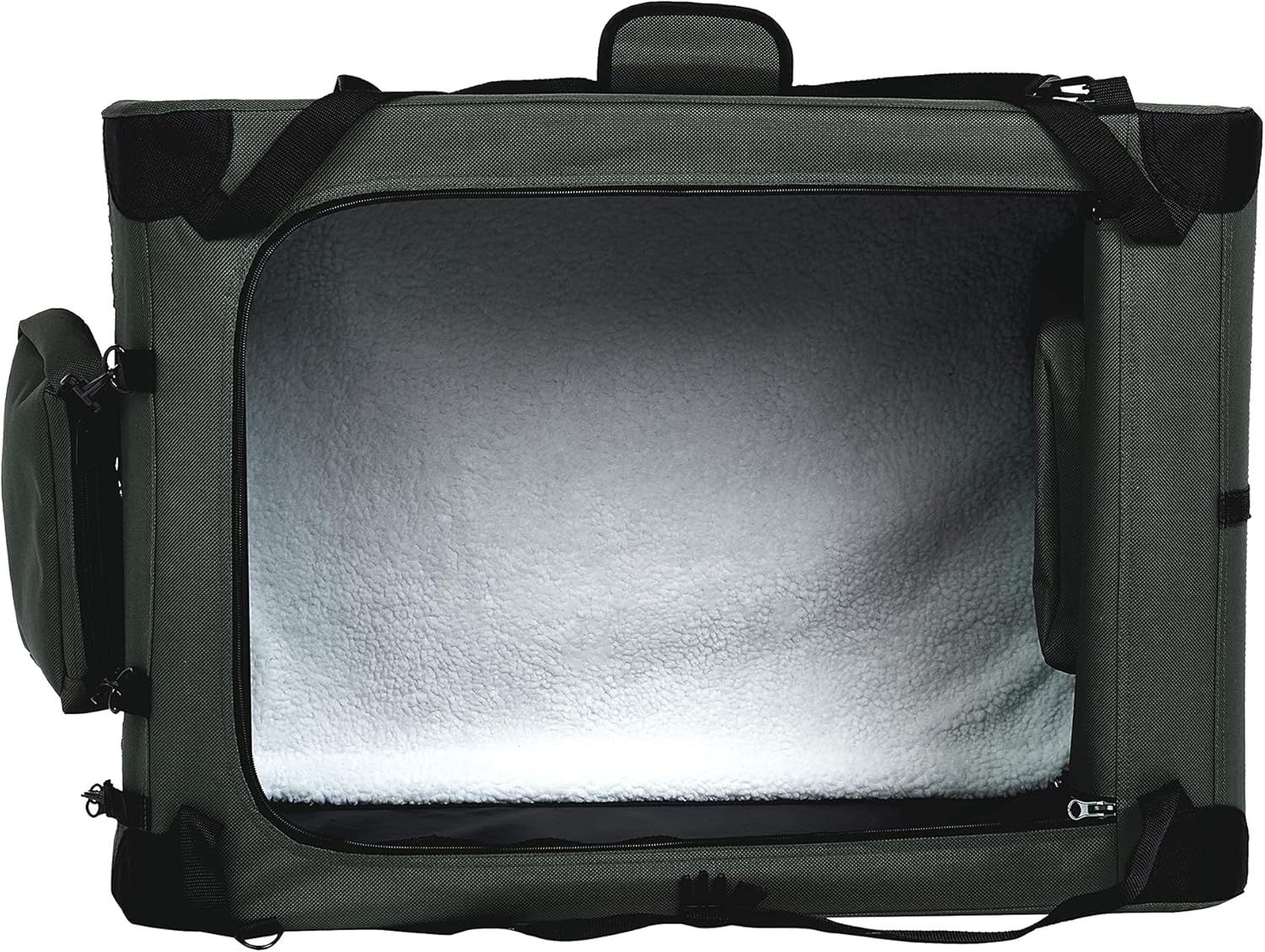 • Multiple screened panels for ventilation and visibility; machine-washable soft fleece pad for comfort; handy pockets on top and sides for storing treats, toys, and more