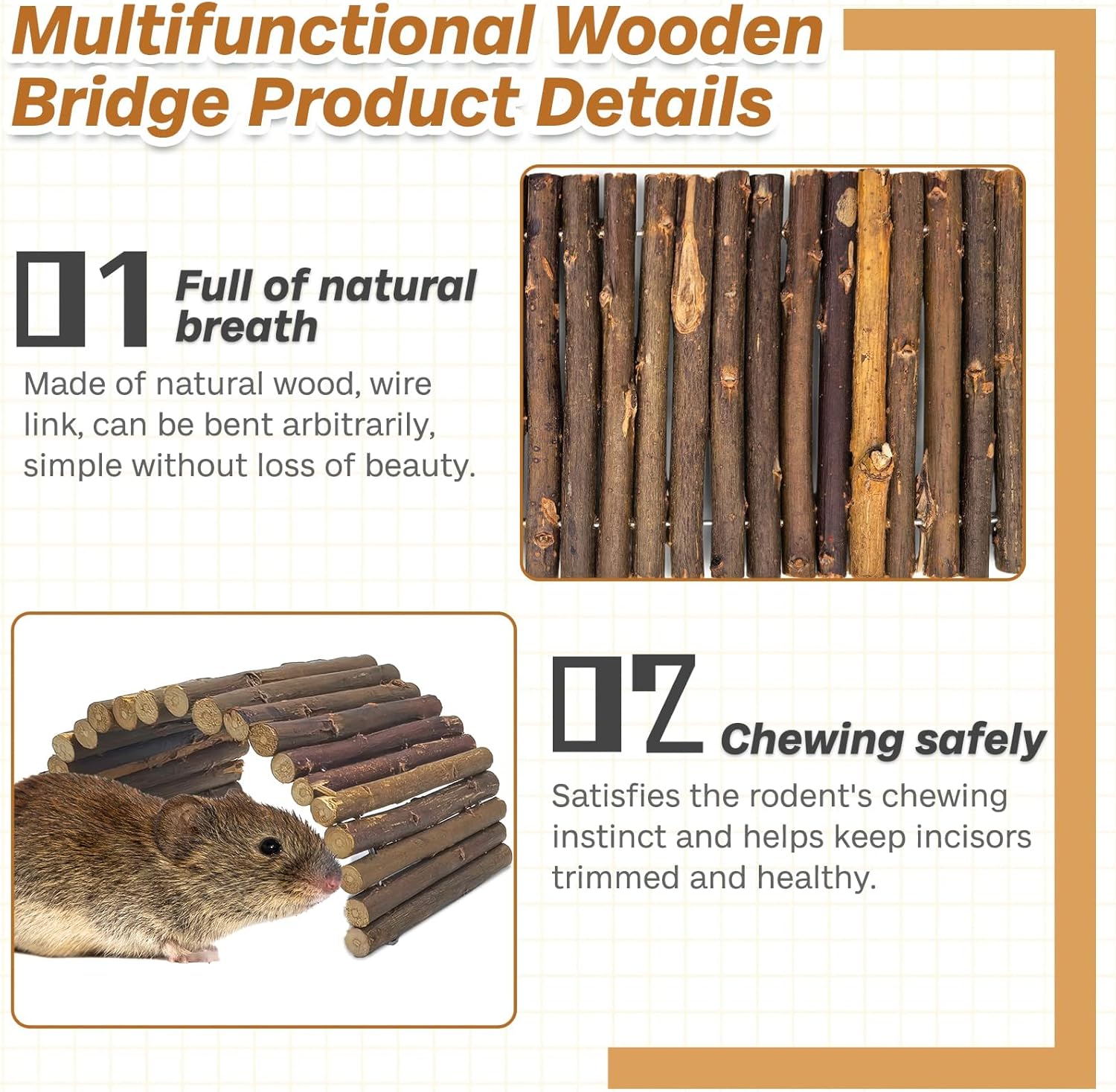 • Versatile Play & Comfort: Perfect for chewing, climbing, and hiding, this wooden bridge doubles as a cozy retreat or interactive toy. Use it as a tunnel, bridge, or ramp to enrich your pet’s habitat with multi-level exploration.