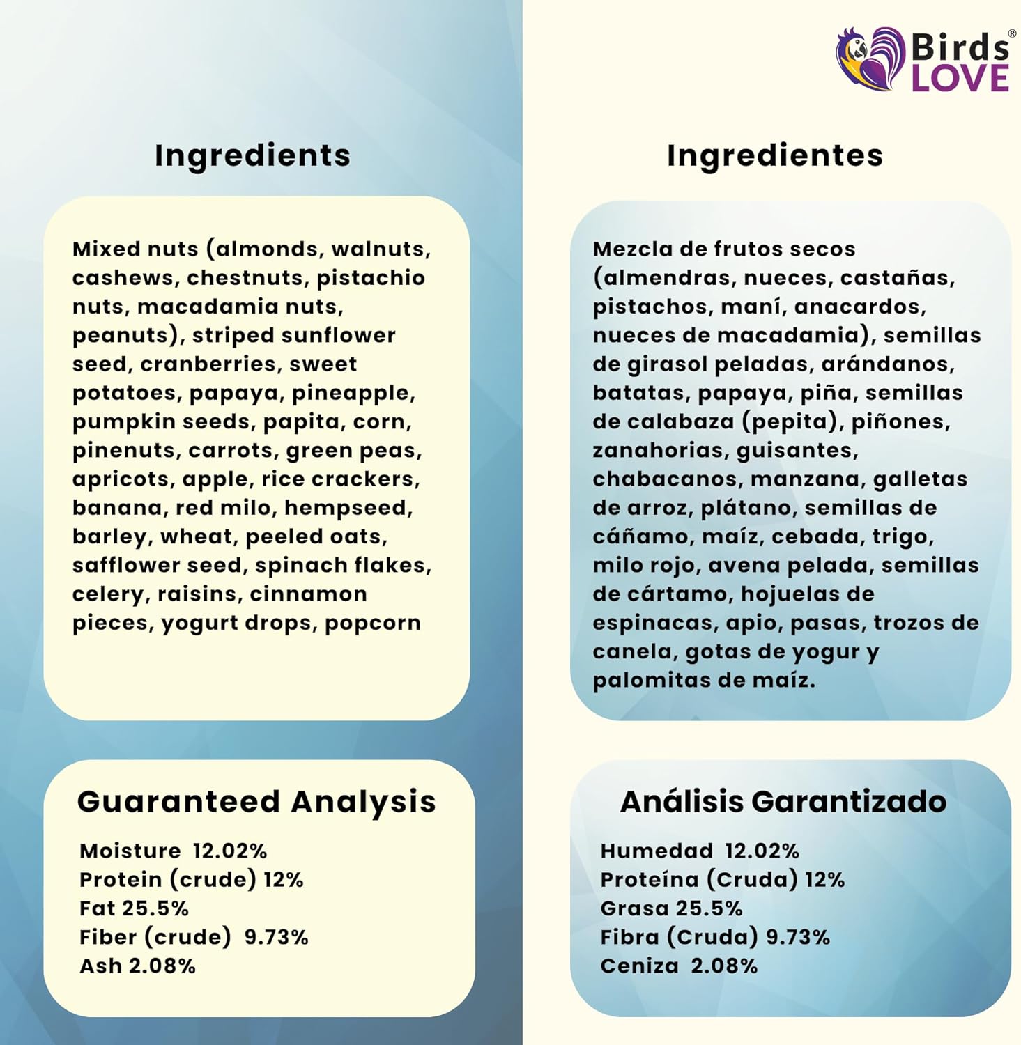 • Colorful and nutritional variety: no artificial coloring, natural blend to draw your feathered friend's attention