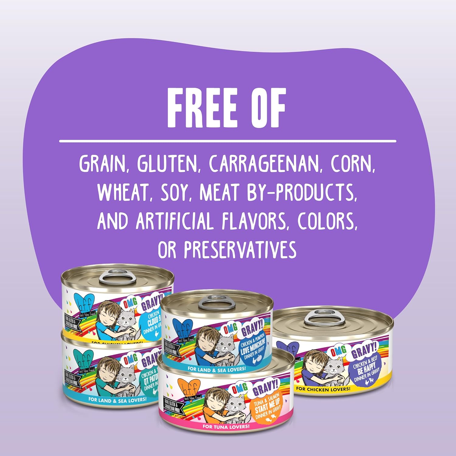• B.F.F. OMG - Your Best Feline Friend will love these extra juicy flavors. Oh my Gravy!