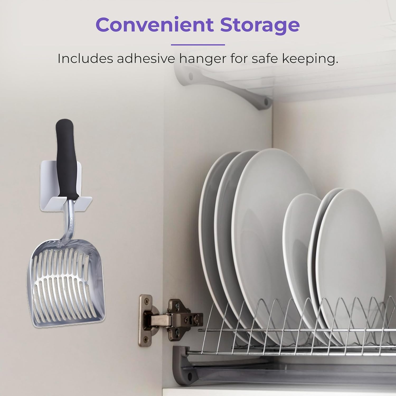 • Convenient Storage: Includes an adhesive plastic hanger for easy storage, allowing you to keep the long handle litter scooper within reach and your space organized when not in use