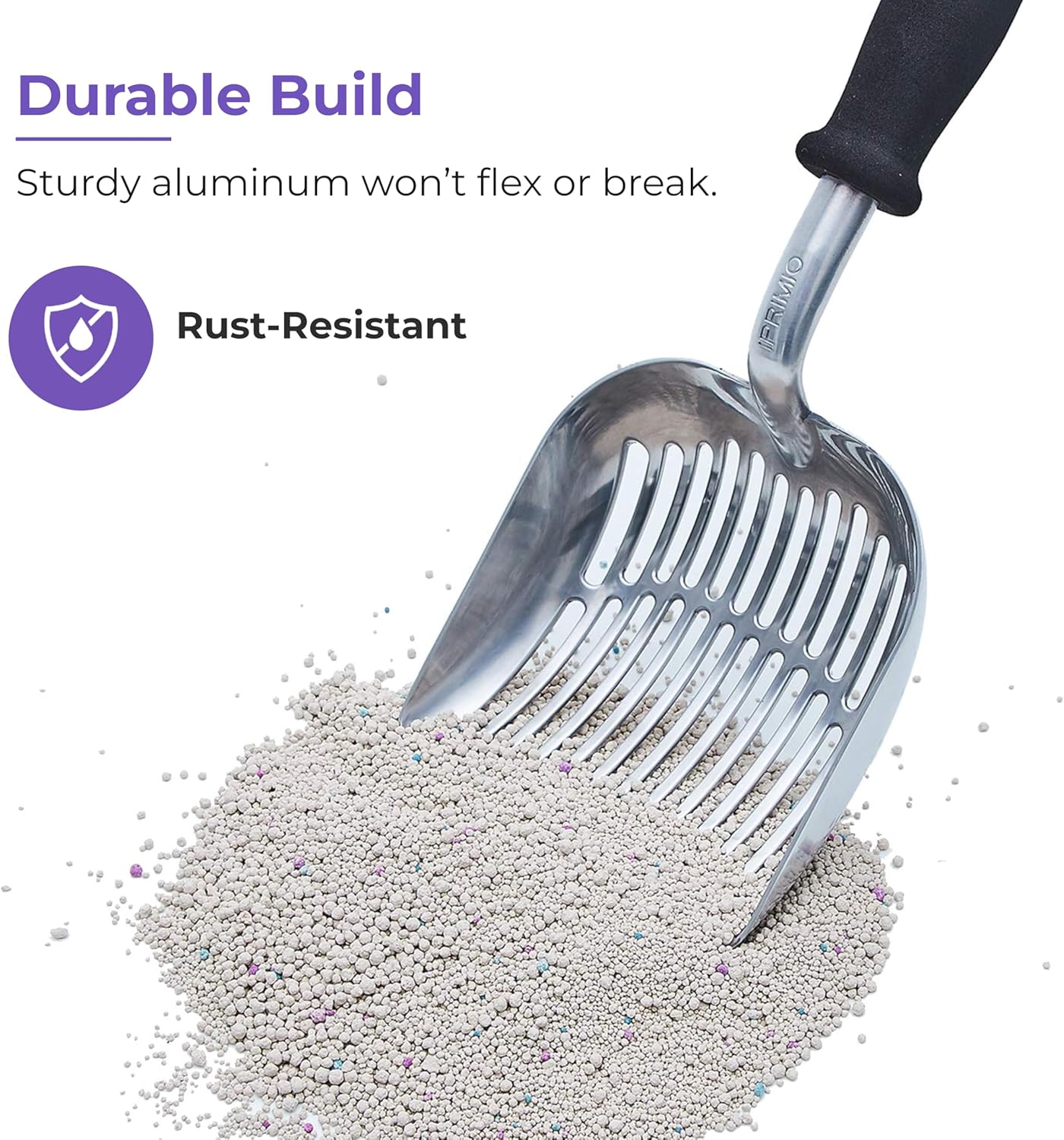 • Durable Aluminum Construction: Made from sturdy aluminum, this cat scooper is lightweight yet durable, ensuring it won't bend or break during use, providing long-lasting performance