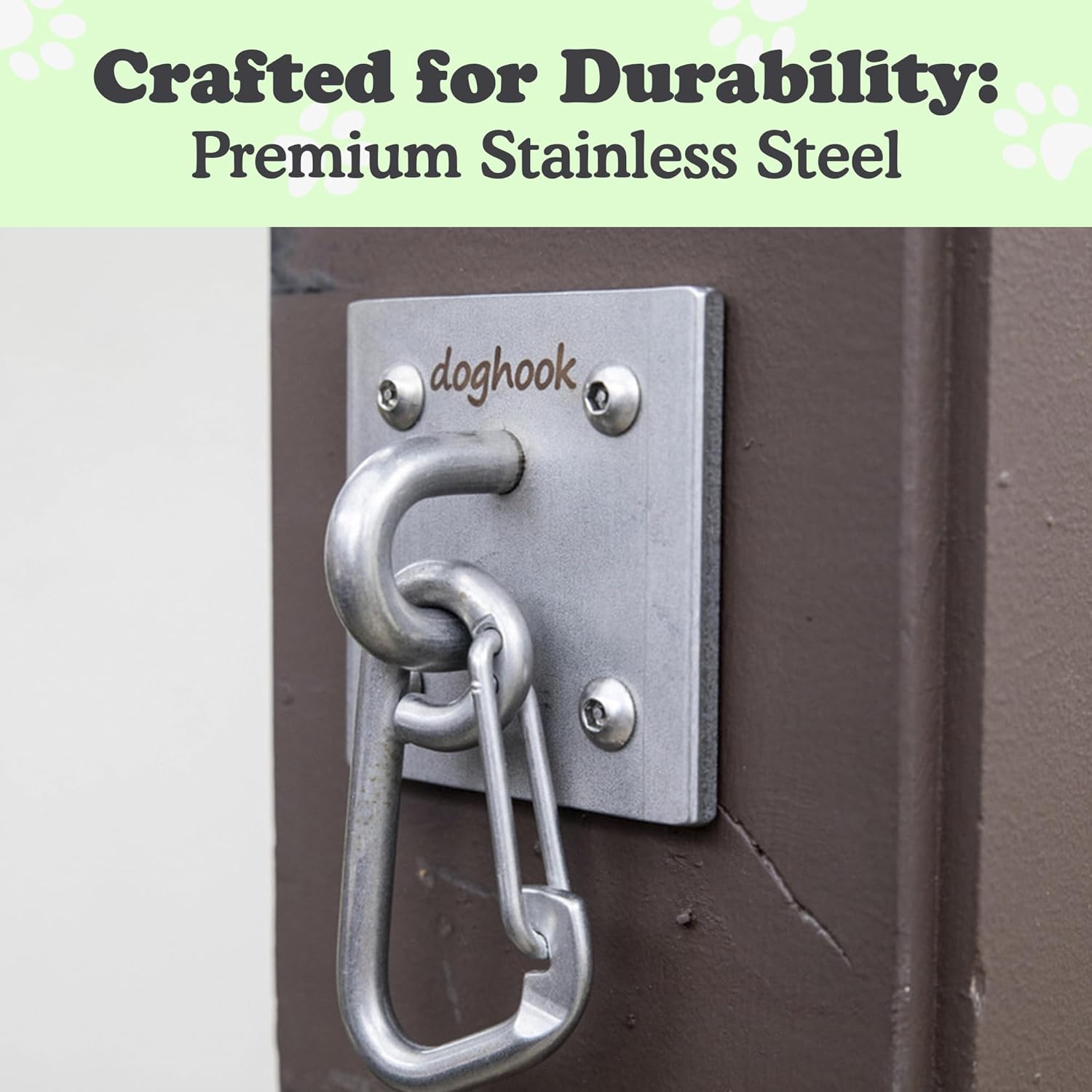 • Ultimate Safety and Security: Our dog lead hook for walls is engineered with premium stainless steel, Made in the USA and tested to hold up to 1,200 lbs. This sturdy dog hook guarantees your dog's or multiple dogs safety.