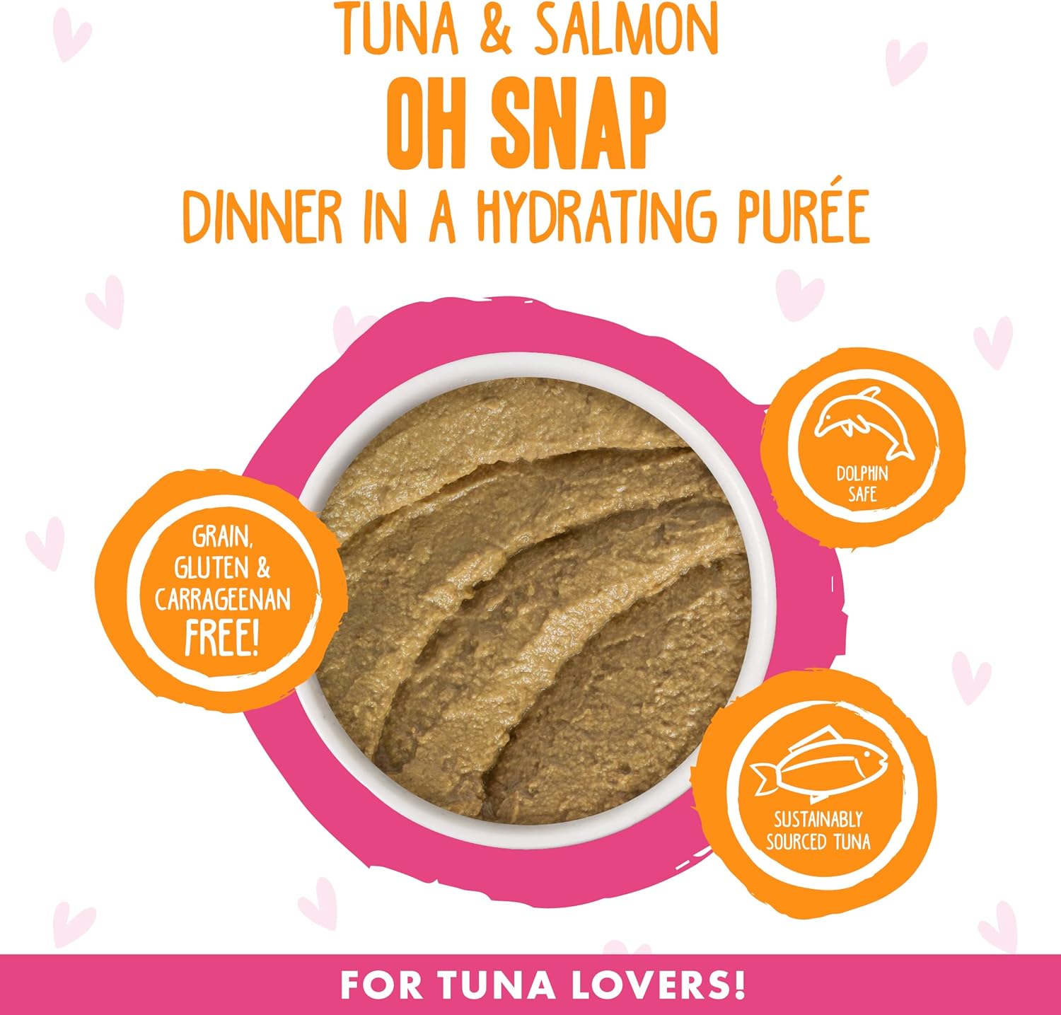 • Tuna & Salmon Oh Snap! (5.5oz Can, Pack of 8) Red-meat tuna and wild-caught salmon gently pureed into a creamy and delicious pate!