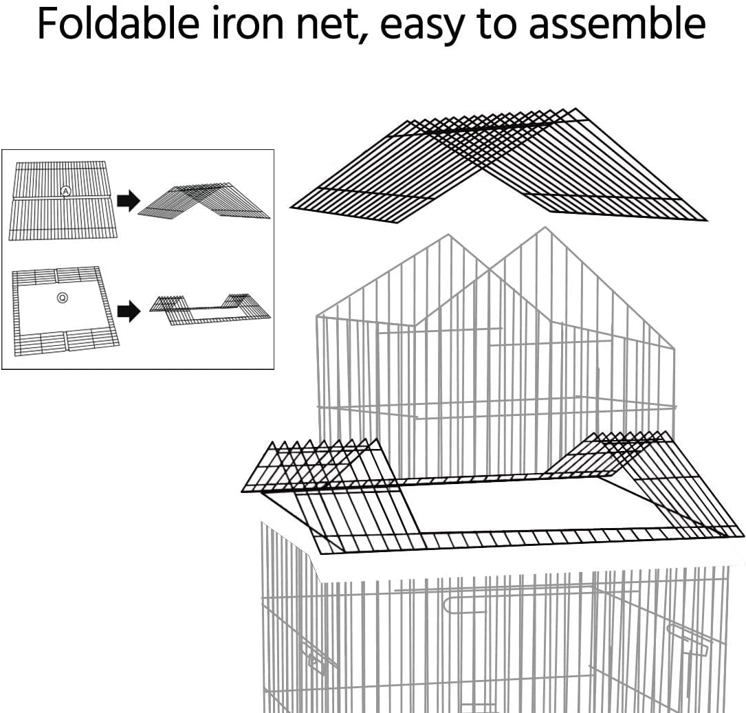 • Slide-out tray: The slide-out litter tray makes cleaning a breeze. The bottom grate above the tray prevents birds from walking directly on the droppings, ensuring your pets’ health and the tidiness of the cage