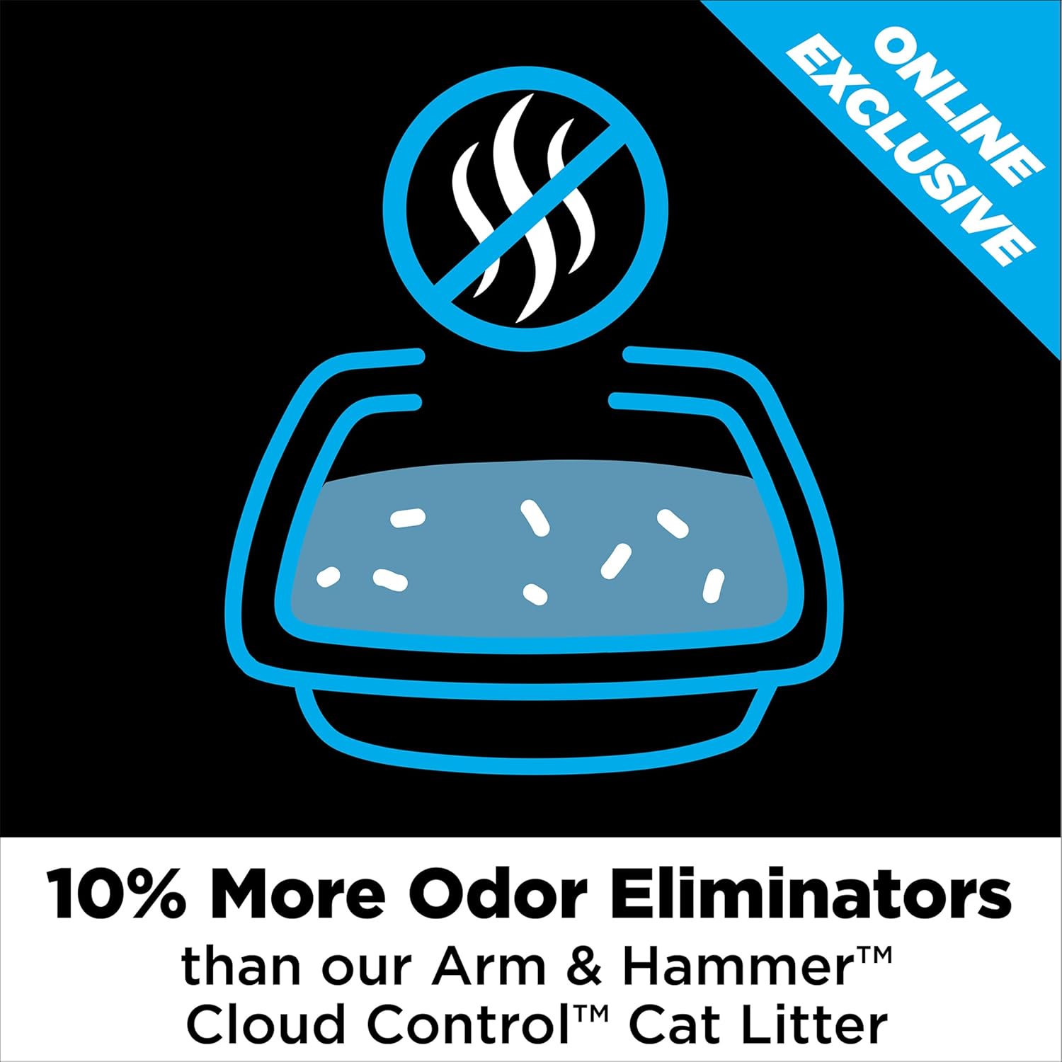 • 10% MORE ODOR ELIMINATORS than our regular ARM & HAMMER Cloud Control cat litter, this clumping litter eliminates urine and feces odor on contact. Its light scent refreshes every time your cat uses the kitty litter box for easy odor control