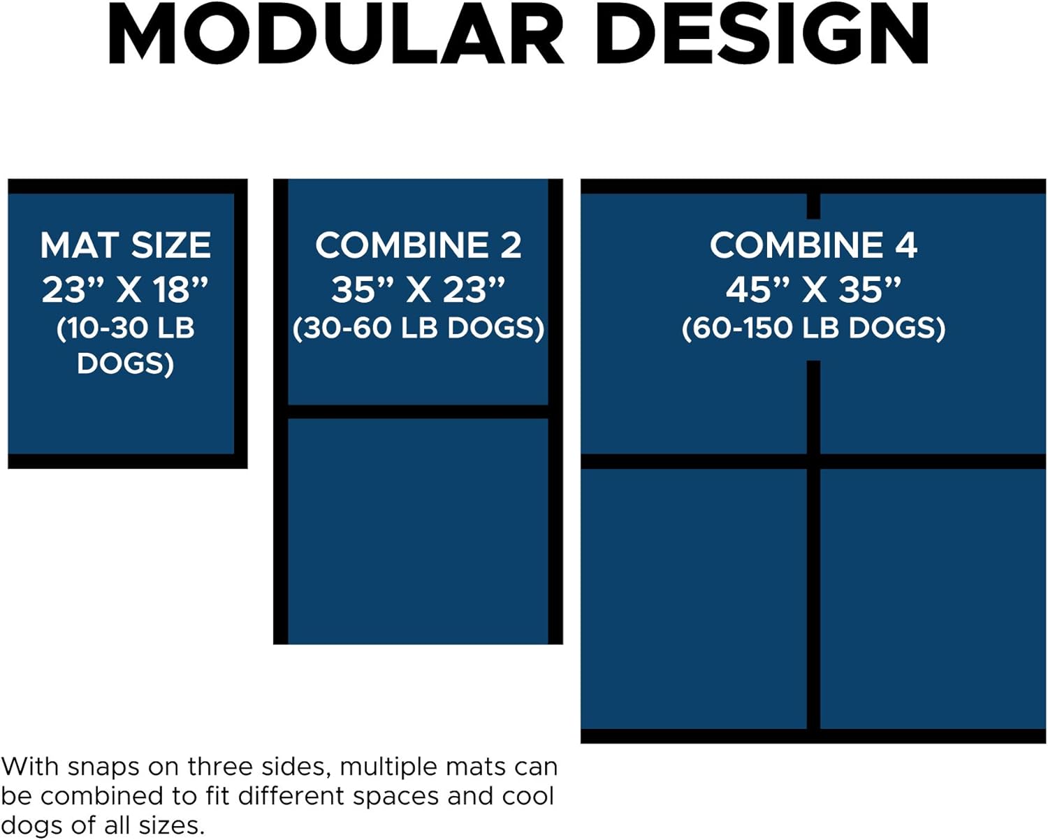 • VETERINARIAN APPROVED: The Cooler Dog Hydro Cooling Mat is made with non-toxic, veterinarian-approved materials and contains no harmful chemicals or gels, only pure water. The rip-stop construction ensures durability for both indoor and outdoor use. Each mat has snaps on three sides to connect multiple mats for larger dogs. To maintain it, machine wash the mat cover as needed.