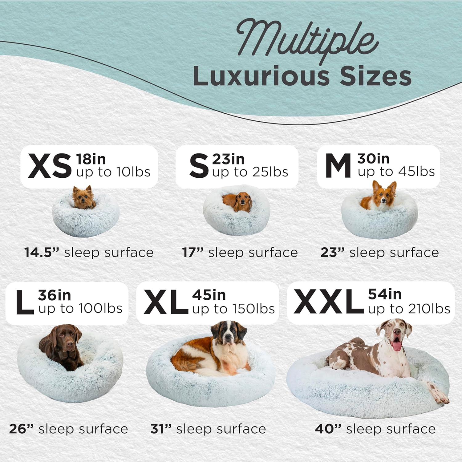 Best Friends by Sheri Original Calming Donut Dog and Cat Bed, Shag Faux Fur, Frost Gray, (30in x 30in) - Anxiety Relief for Pets Up to 45 lbs