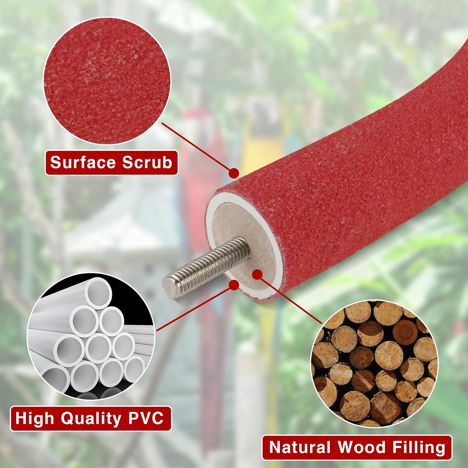 • Safe material: These bird perches have a rough surface, the outer layer is covered with natural quartz sand and high quality PVC, and the inner layer is made of natural wood, the material is safe, non-toxic and odourless, providing a safe and comfortable perch for your birds to play and stand