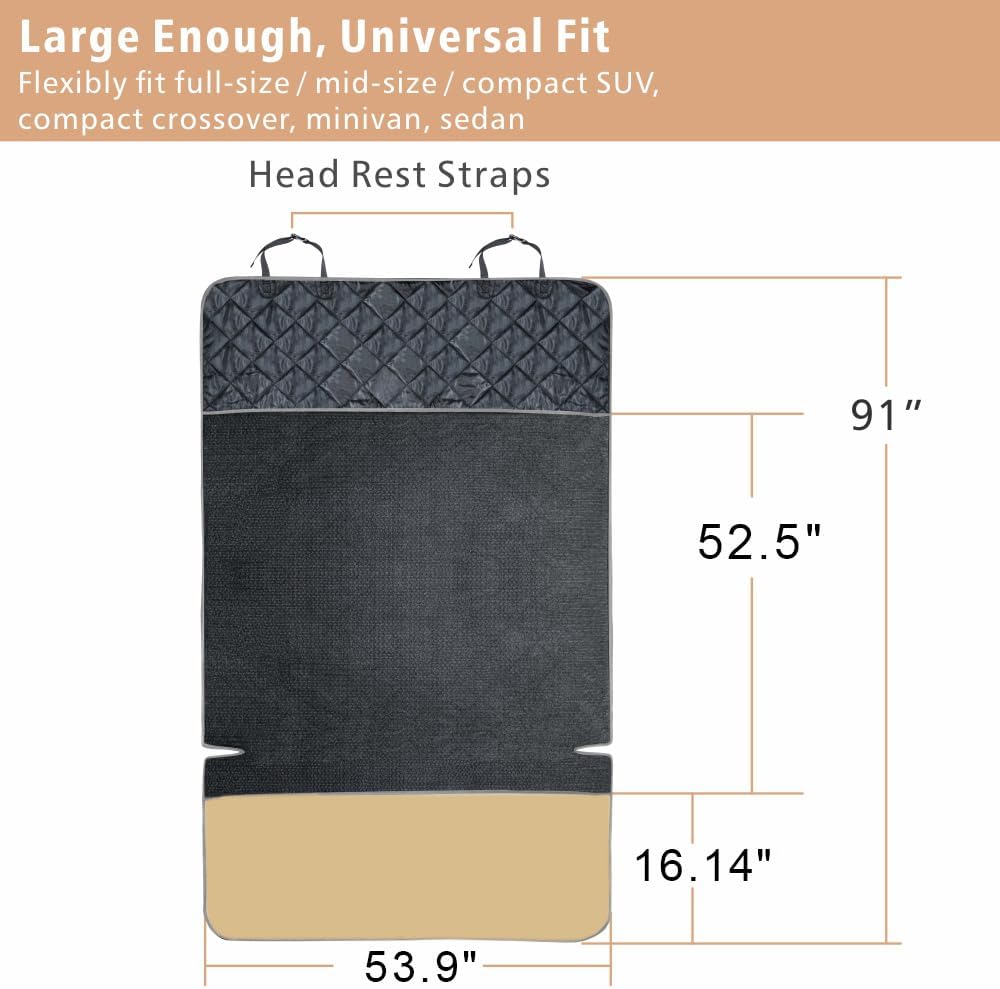 • Water Resistant Cargo Liner: 4 water-resistant layers quilted, WATER RESISTANT and protects your car seat from pet dander, hair, spills, oders, mud and water; Easy to clean just by wiping away dirt or vacuuming, washable. Tips: If there's a pee accident, please clean immediately.
