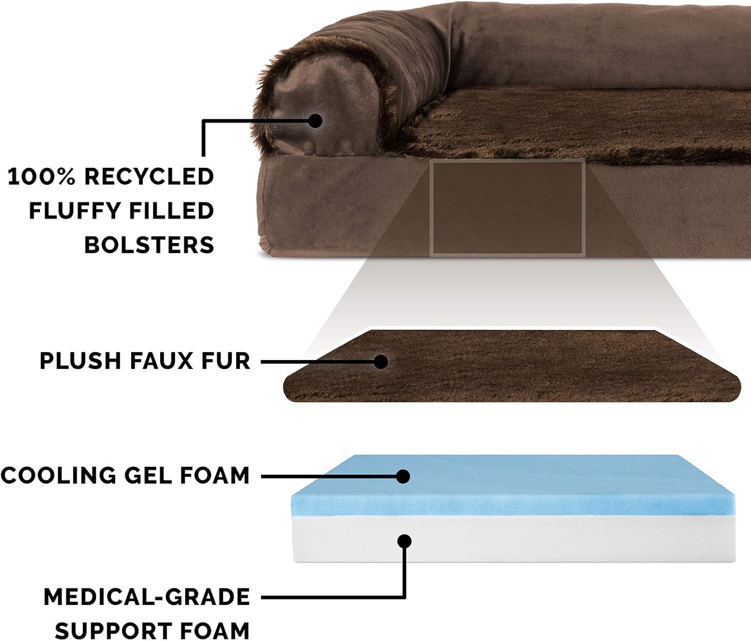 Furhaven Cooling Gel Dog Bed for Large Dogs w/ Removable Bolsters & Washable Cover, For Dogs Up to 125 lbs - Plush & Velvet L Shaped Chaise - Sable Brown, Jumbo Plus/XXL