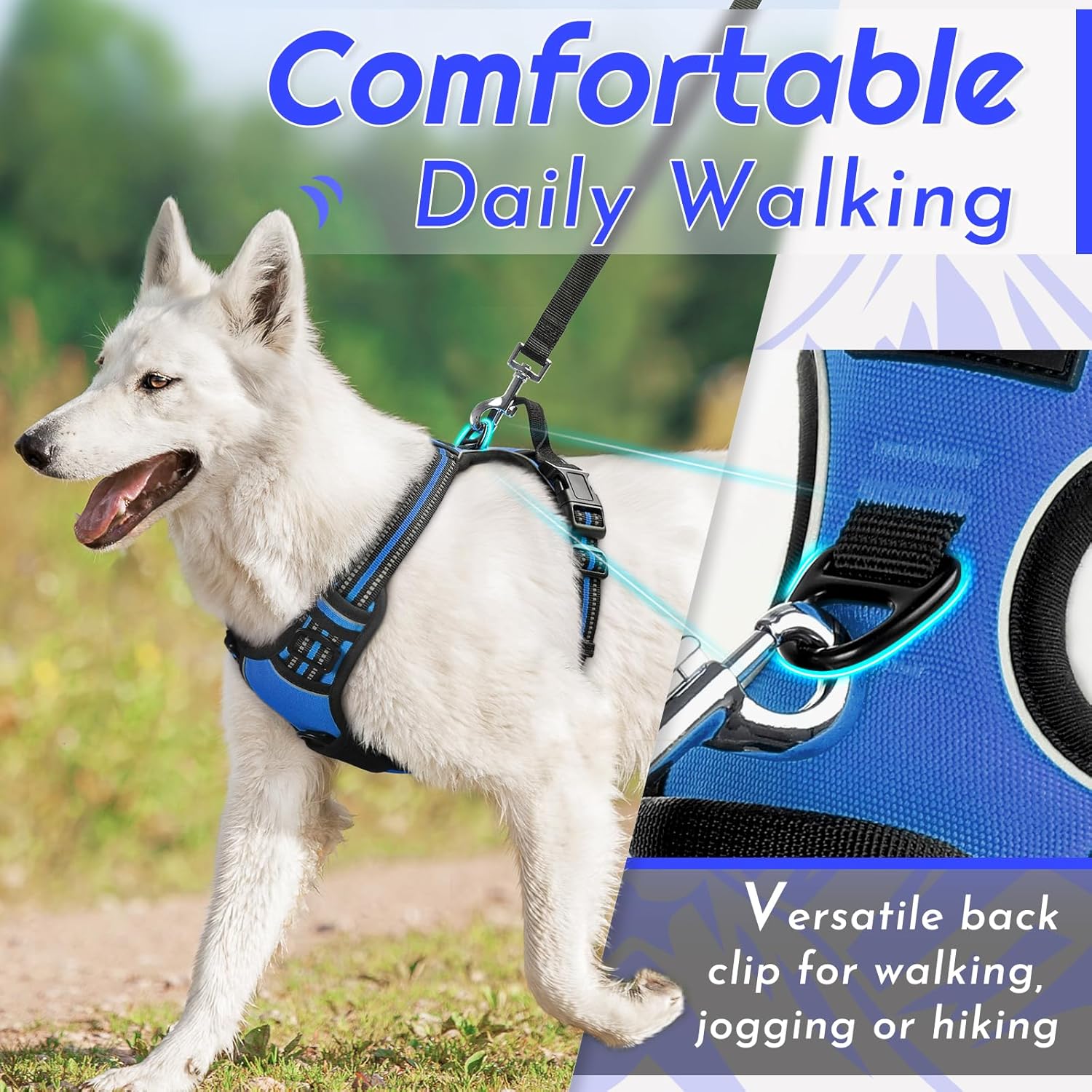 Eagloo Dog Harness for Large Dogs, No Pull Service Vest with Reflective Strips and Control Handle, Adjustable and Comfortable for Walking, No Choke Pet Harness with 2 Metal Rings, Blue, XL