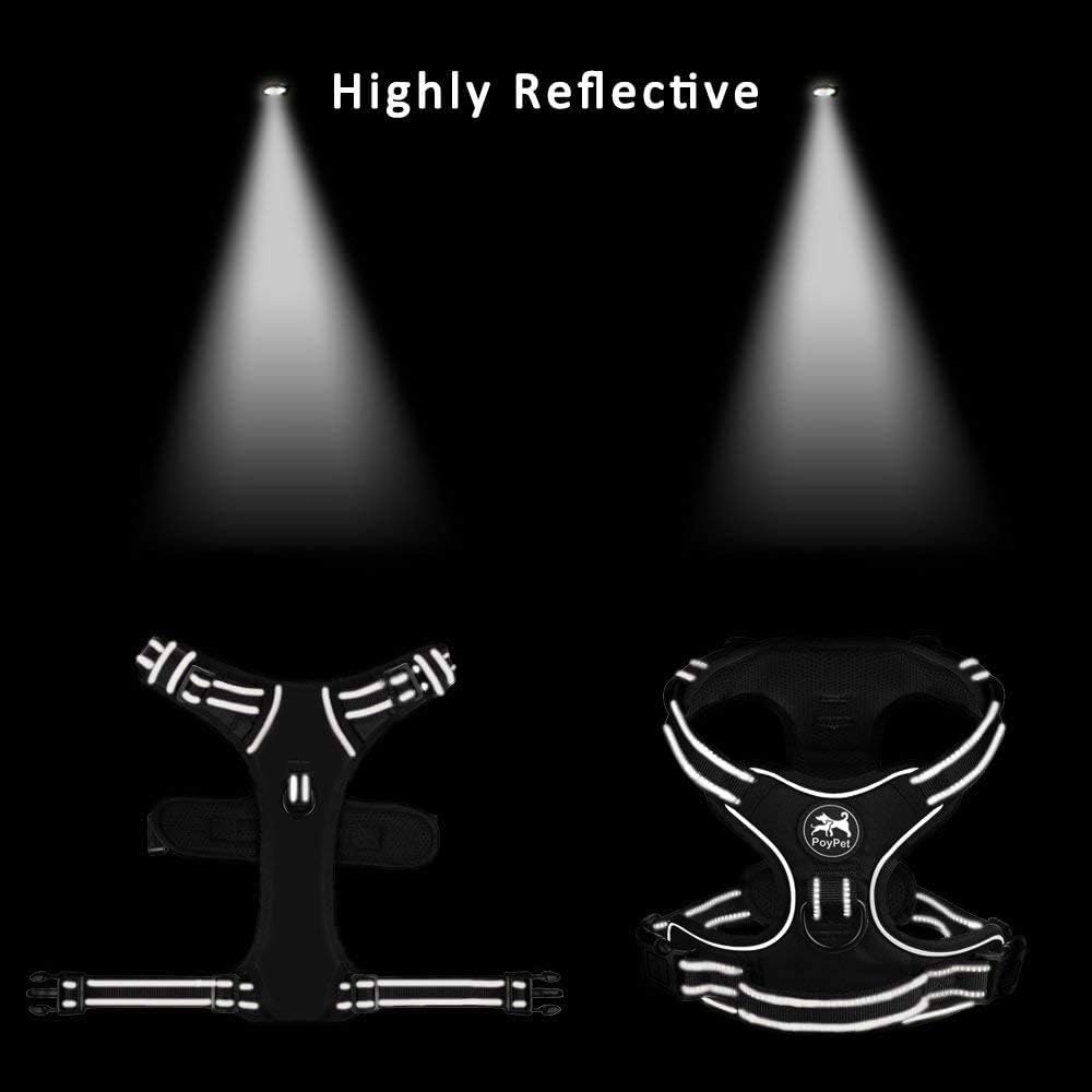 PoyPet No Pull Dog Harness, Reflective Comfortable Vest Harness with Front & Back 2 Leash Attachments and Easy Control Handle Adjustable Soft Padded Pet Vest for Small to Large Dogs (Light Blue,L)