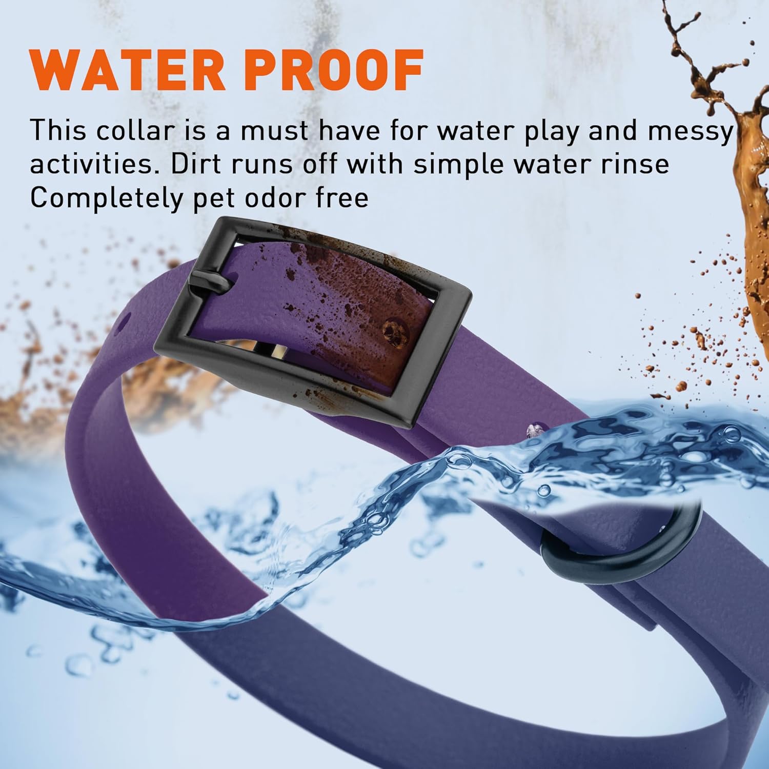 • Free Your Dog to romp in puddles and retrieve from lakes with the Dogline Biothane Waterproof Dog Collar. This water-repellent collar stays dry and odor-free, without shrinking or losing flexibility.