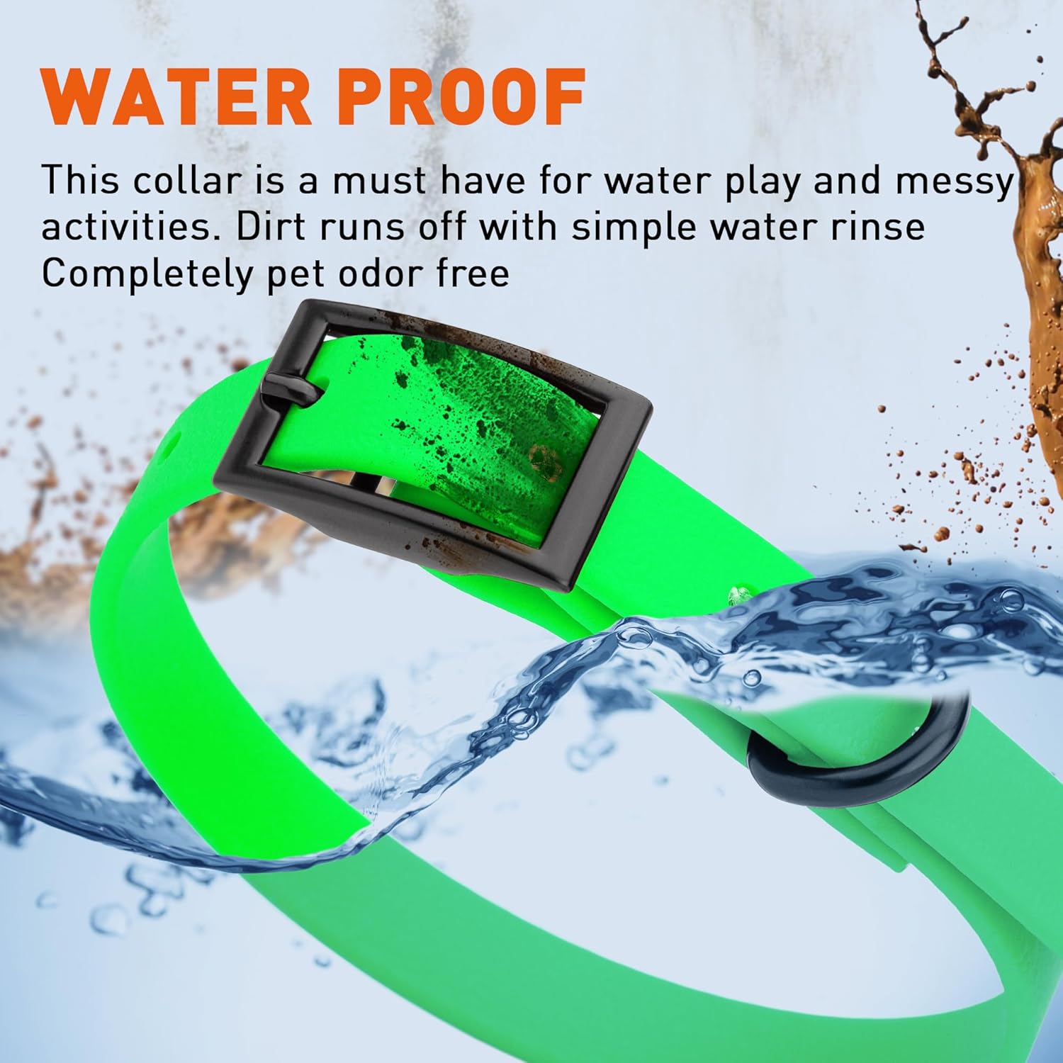 • Free Your Dog to romp in puddles and retrieve from lakes with the Dogline Biothane Waterproof Dog Collar. This water-repellent collar stays dry and odor-free, without shrinking or losing flexibility.
