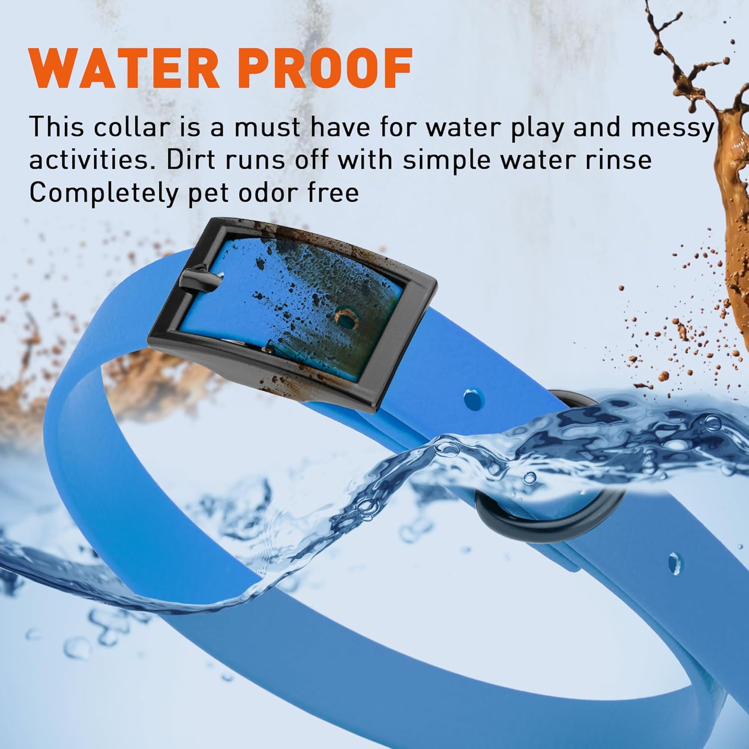 • Free Your Dog to romp in puddles and retrieve from lakes with the Dogline Biothane Waterproof Dog Collar. This water-repellent collar stays dry and odor-free, without shrinking or losing flexibility.