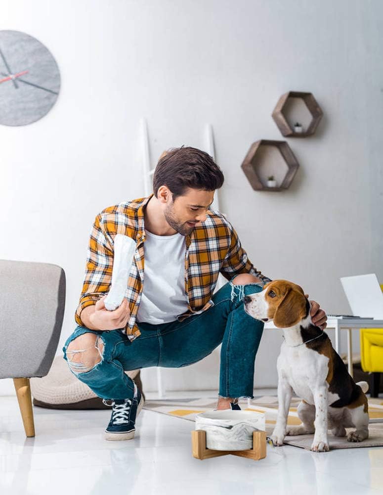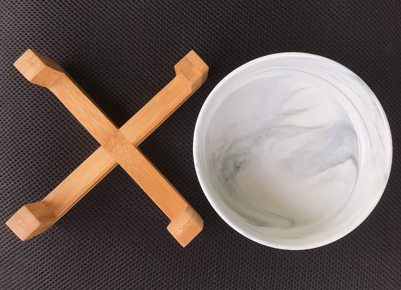 • 【CERAMIC MATERIAL & DISHWASHER SAFE】Pet bowl is made of Ceramic with bamboo stand to prevents bowls from sliding while your pet eats. Dishwasher-safe for easy cleaning. But the bamboo stand doesn't like to run into the dishwasher.