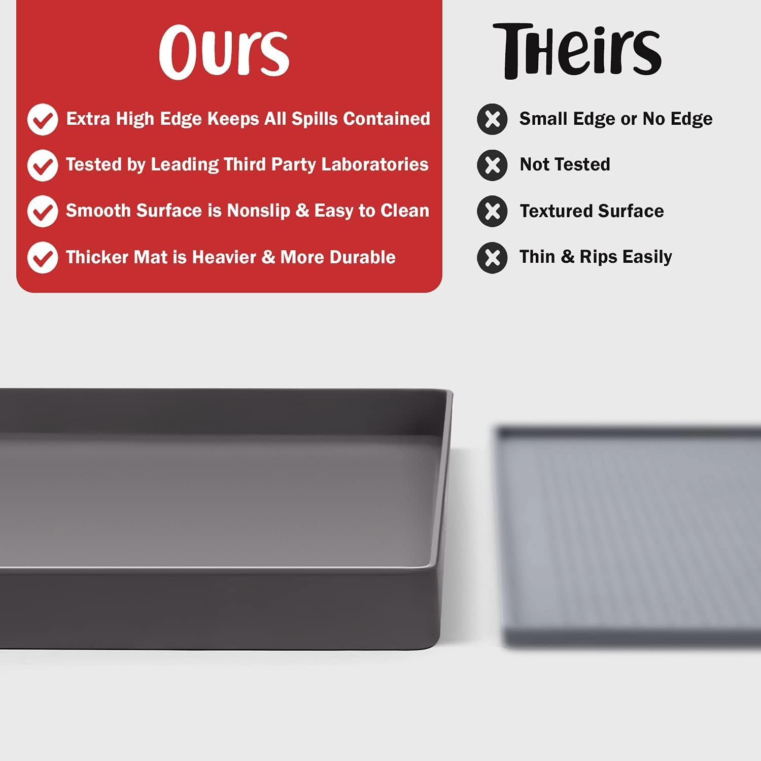 • Less Mess & Less Stress: Super high edge (0.6”) of DogBuddy Dog Food Mat keeps the spilled food and water on the mat and away from your beautiful floor. Silicone is naturally 100% waterproof, so what happens on the mat stays on the mat.