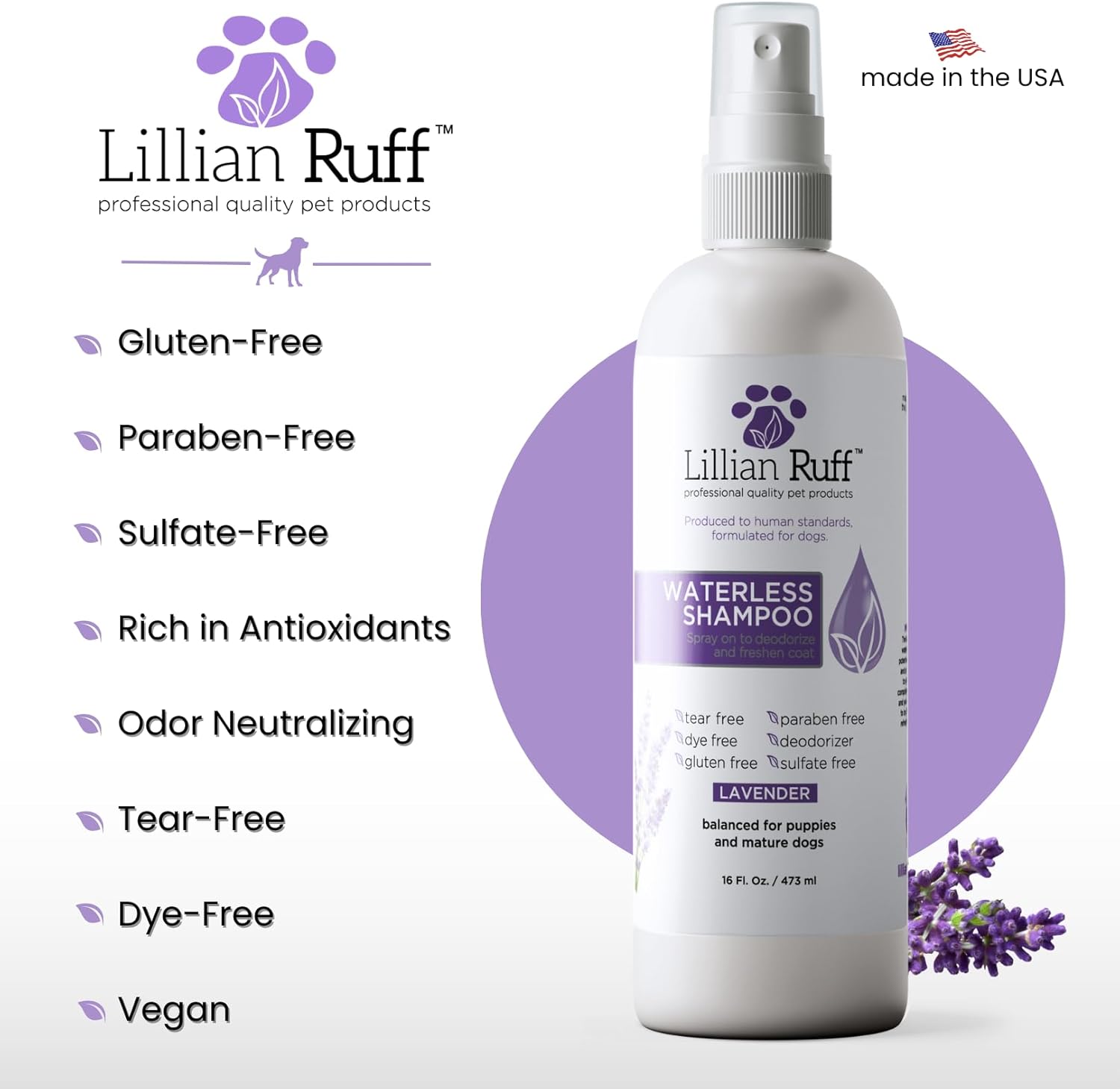 - A Brand Used by Professionals โ Lillian Ruff serves professional vets and groomers all over the world thanks to our gentle formula and quality ingredients. Everything at Lillian Ruff is produced to human standards and formulated for Pets.