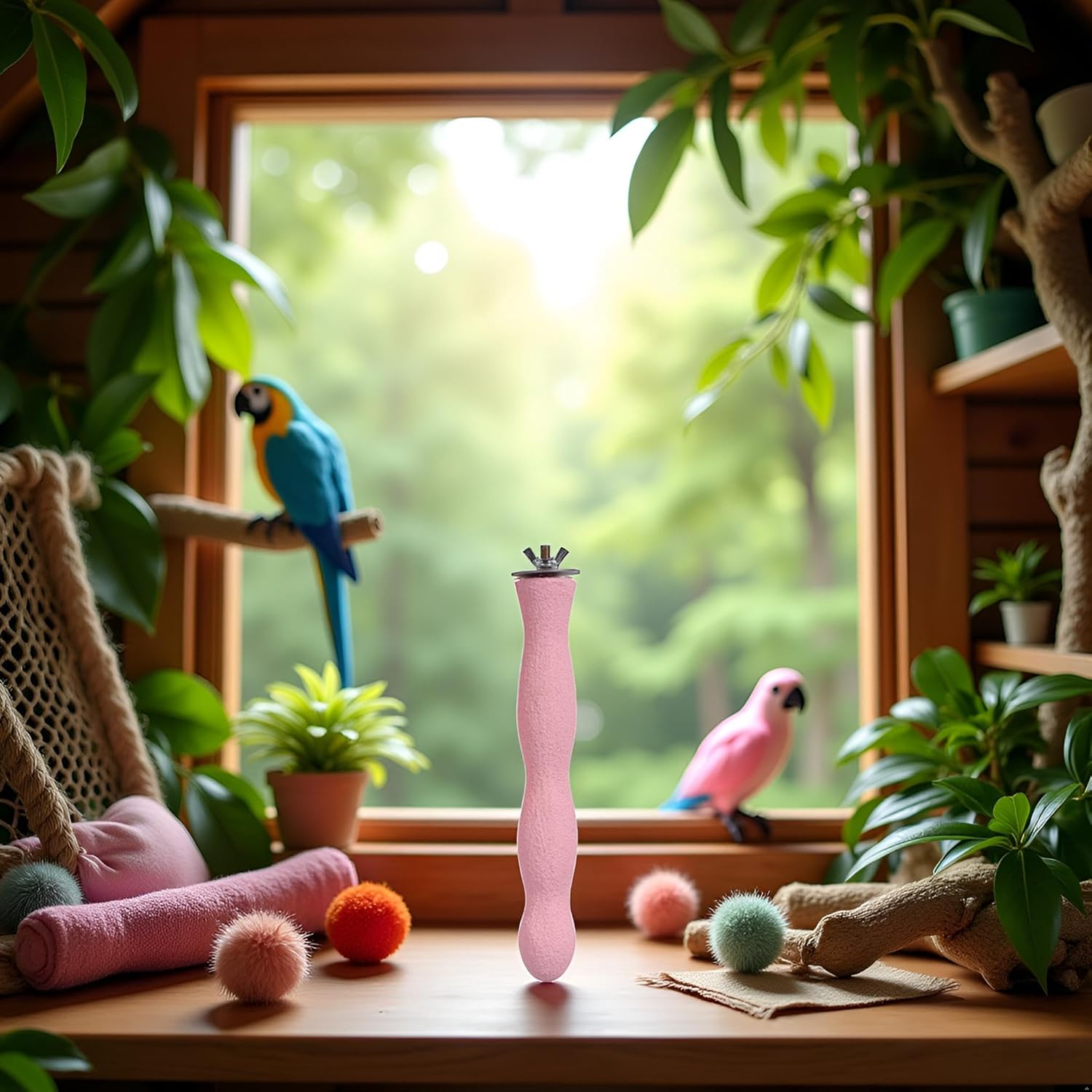 • Reduce Loneliness---The pink color appearance can attract the attention of birds and give the birds a good activity playing space. Decompression, prevention of parrots suffering from depression or screaming.