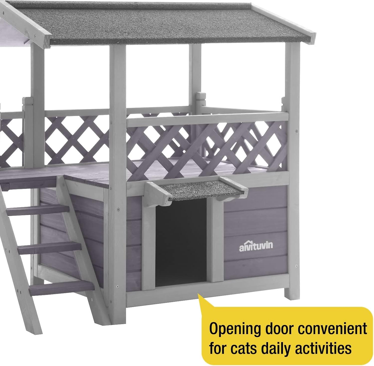 Aivituvin Cat House Outdoor Indoor Feral Kitty Shelter with Escape Door for Cats, Weatherproof Roof