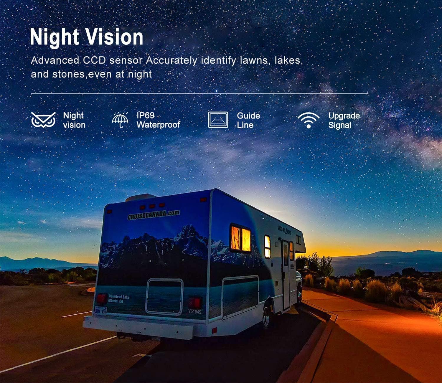 - ๐ ใNight Vision and IP69 WaterproofใCCD Sensor for Rear Camera.Make the Night Vision Images More Clear and Stereoscopic.Accurately Identify Lawns, Lakes, and Stones even in the Dark.The Camera Outer Casing is Closed with a Metal Gel. Anti-fog and Waterproof.