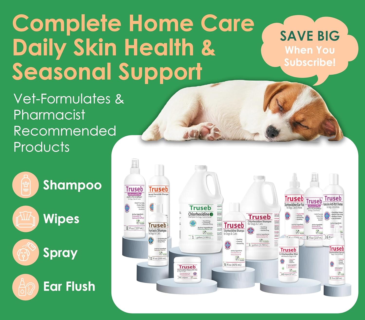 Truseb Topical Chlorhexidine 4% Shampoo for Dogs, Cats & Horses (12 oz)- with Aloe for Cleansing (Chlorhexidine 4% Shampoo, 12 oz)