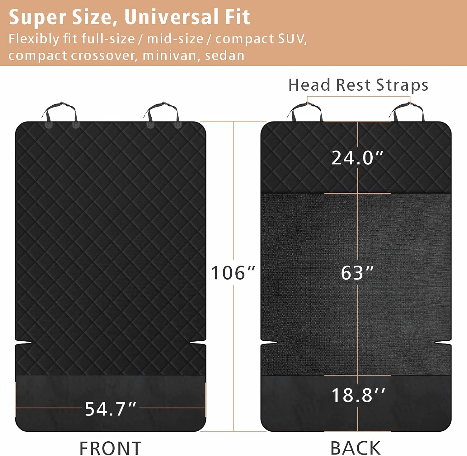 • Water Resistant Cargo Liner: 4 water-resistant layers quilted, wear-proof 600D oxford fabric protect your car seat from pet dander, hair, spills, odors, mud and water; Easy to clean just by wiping away dirt or vacuuming. Tips: If there's a pee accident, please clean immediately.