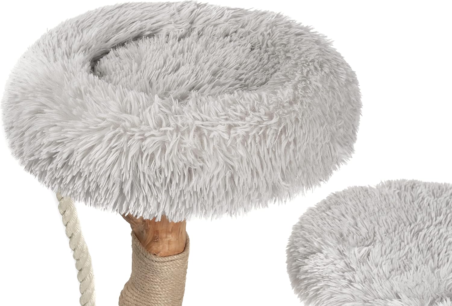 • BEAUTIFUL & UNIQUE DESIGN: Unlike most cat furniture, this wooden cat tree tower will enhance the look of your home. It includes two beautifully crafted, one of a kind trunks that hold a faux fur covered platform and an extremely comfortable bolstered bed. It is perfect for your kitty to have a glorious time napping while you can enjoy looking at a beautiful piece of art that adds to your homes aesthetics.