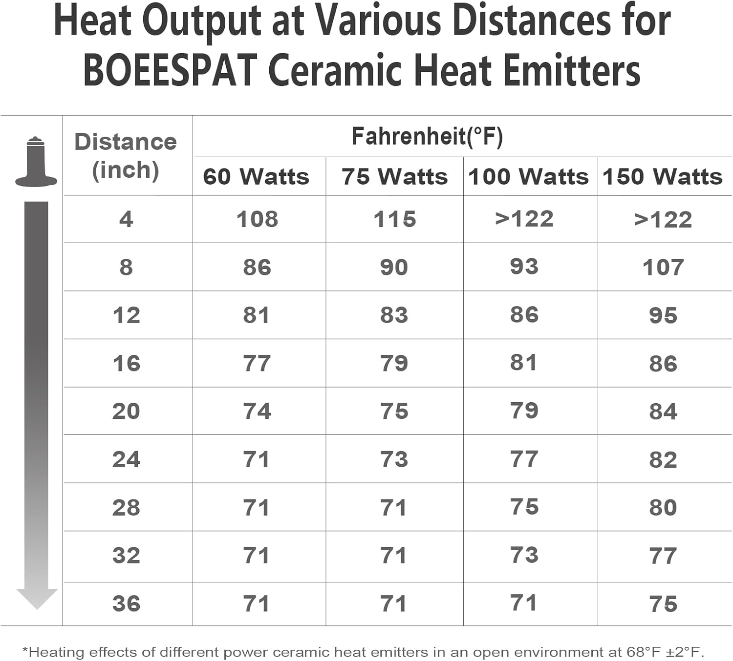 • Efficient Heat Source: Experience uninterrupted day and night cycles with our BOEESPAT Ceramic Heat Lamp Bulbs. Emitting natural sun-like heat without disrupting your pet's habitat, it ensures up to 15000 hours of consistent warmth.