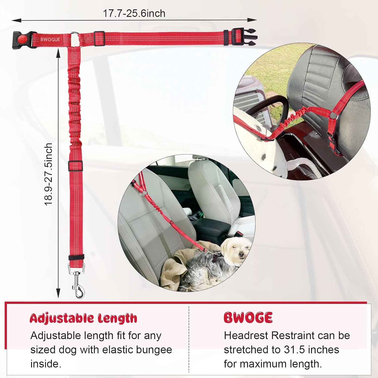 BWOGUE 2 Packs Dog Cat Safety Seat Belt Strap Car Headrest Restraint Adjustable Nylon Fabric Dog Restraints Vehicle Seatbelts Harness