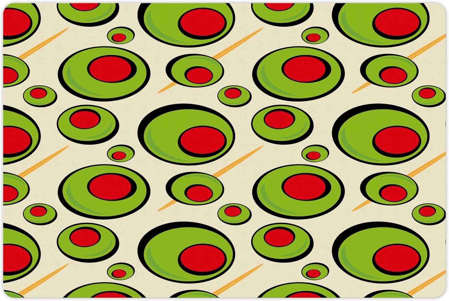 Lunarable Vintage Pet Mat for Food and Water, Repeated Pattern Olives with Toothpicks for Cocktail Martini, Non-Slip Rubber Mat for Dogs and Cats, 18" X 12", Cream Lime