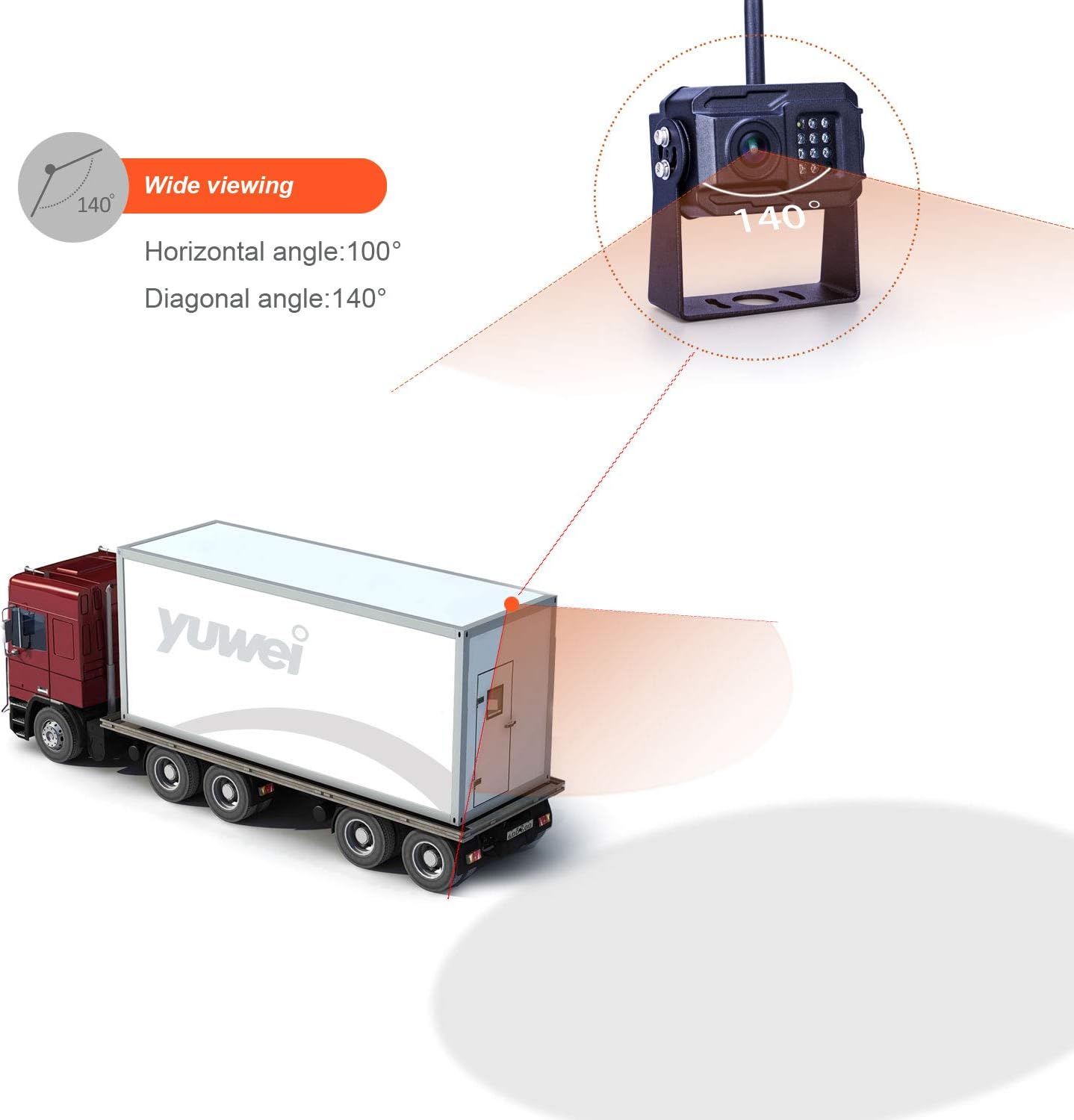 • โ˜… Better & clear image quality Full HD 720P wireless rear view camera, it is IP69k waterproof with infrared clear night vision looks further distance up to 10meters under low light environment and wide viewing angle of 120ยฐ covers whole blind spot, its rustless well-constructed housing and bracket are enable cameras withstand harsh environment.