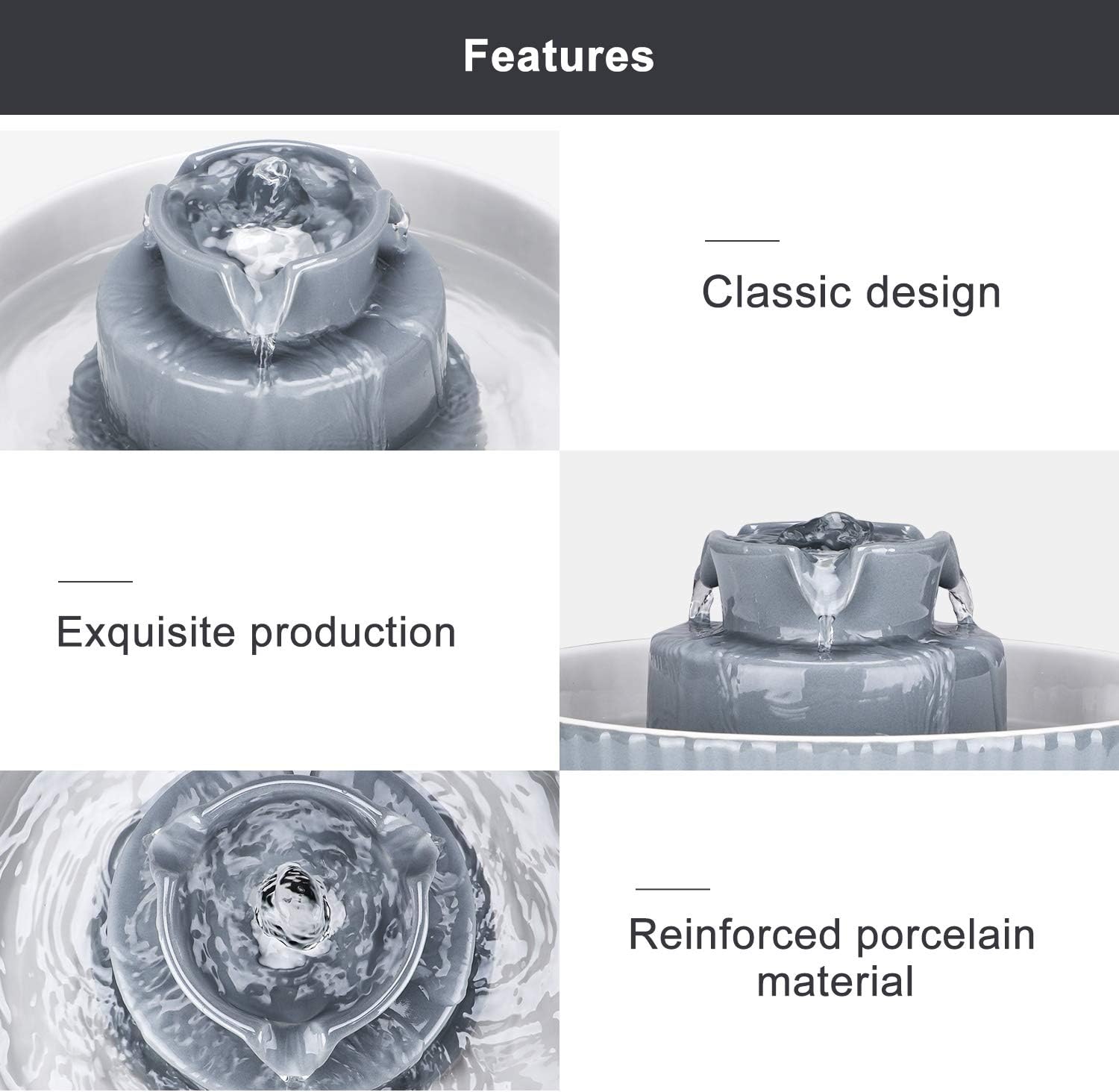 • Classic design: Wonder Creature porcelain cat water fountain is used for indoor only, giving your home the elegant and unique decoration.