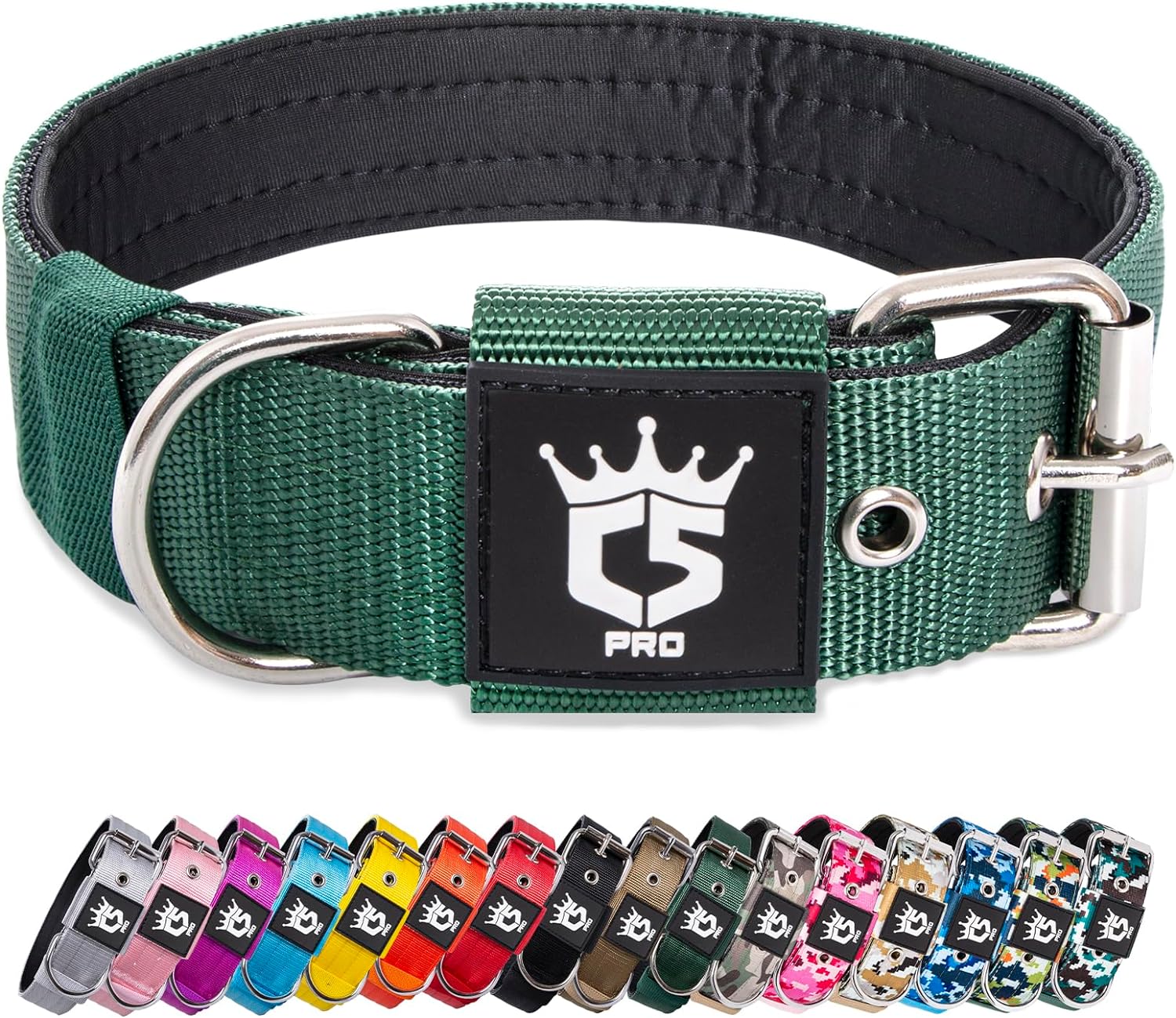 TSPRO Tactical Dog Collar 1.5 Inch Wide Thick Dog Collars with Heavy Duty Metal Buckle, Durable, Strong, Adjustable for Medium to Large Dogs (Green M)