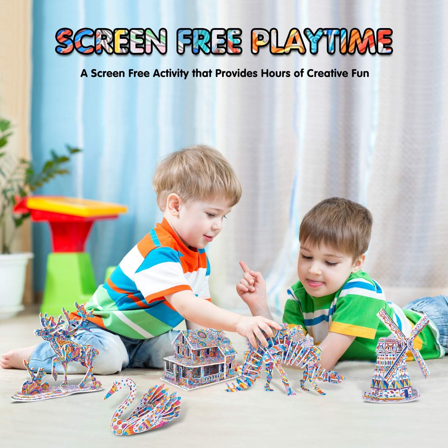• 3D Art Coloring Kit: The set includes a total of 5 different models and 12 dual tip markers. Kids can assemble and color these craft kits themselves. Hours of educational and creative fun that are exciting and hands on for kids and adults alike.
