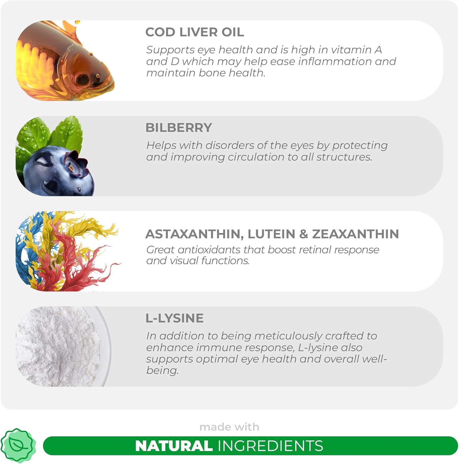Eye Support for Dogs - 120 Chewable Tablets - Supplements for Vision, Eye Vitamins for Dogs, with Cod Liver Oil Antioxidant, Omega 3 EPA and DHA Fatty Acids.
