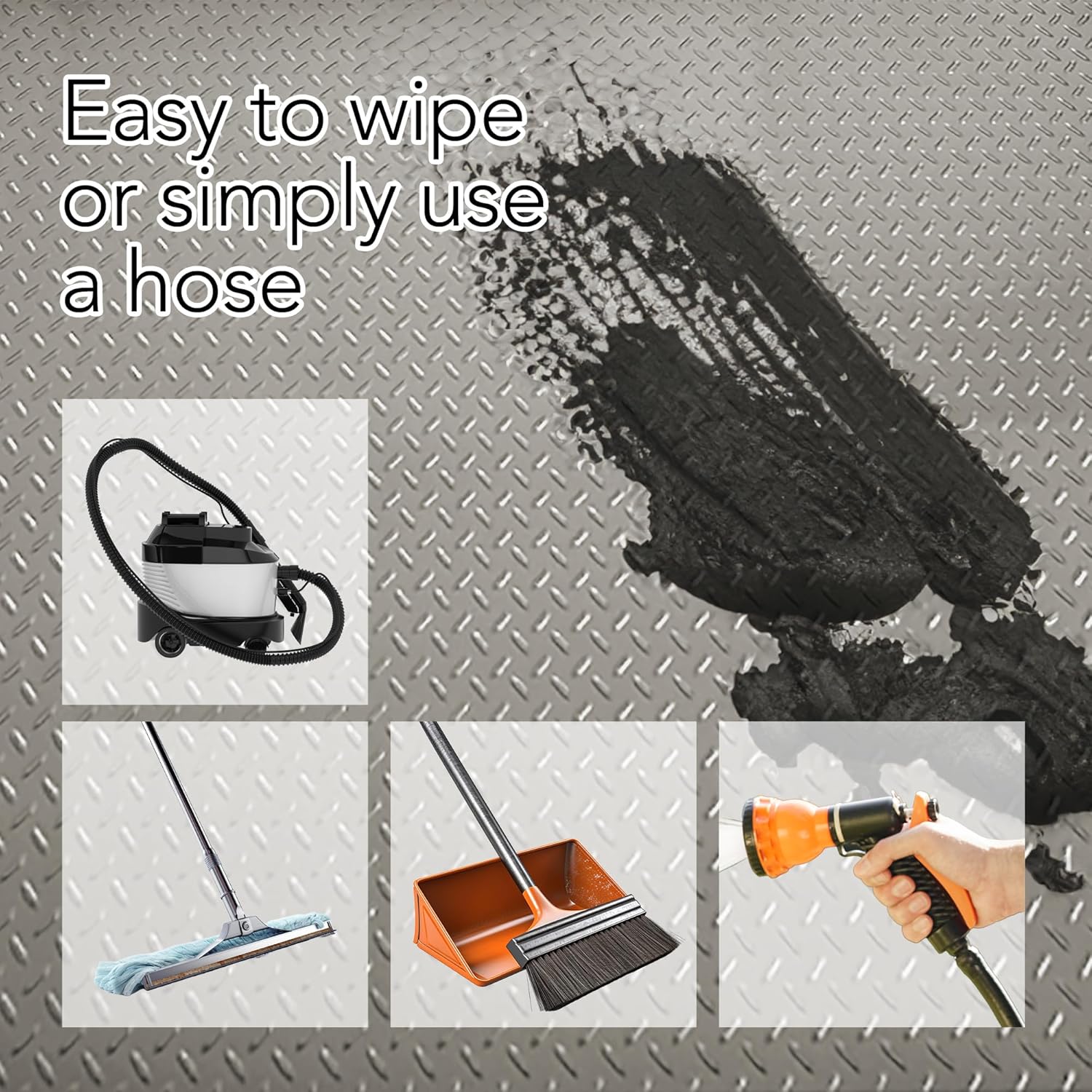 • THE DAMAGE-DEFYING SOLUTION TO SPILLS & STAINS: Safeguard your indoor/outdoor flooring from stubborn grease, rust, oil spills, tire skids, leaks, and more with our durable vinyl mat, designed to deliver unbeatable protection against costly damage