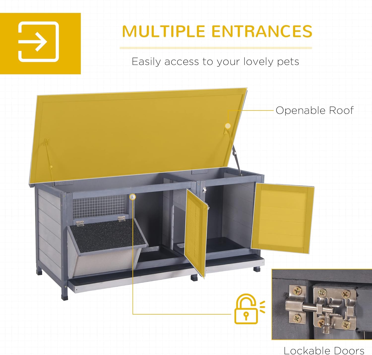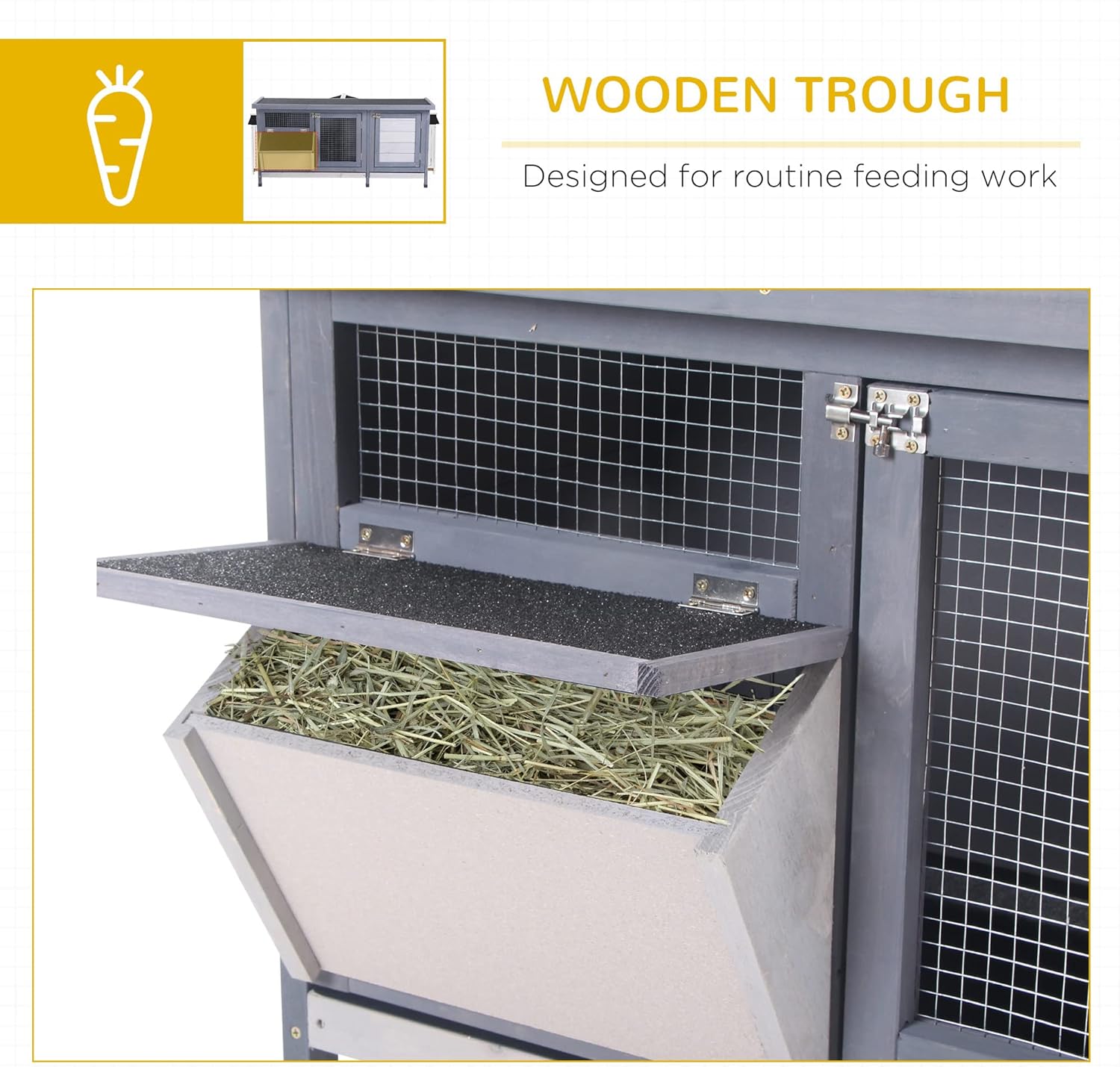 • Easy Feeding: The rabbit house includes a feeding trough so you can put grass or other pet food in it for your pet to enjoy at their leisure.