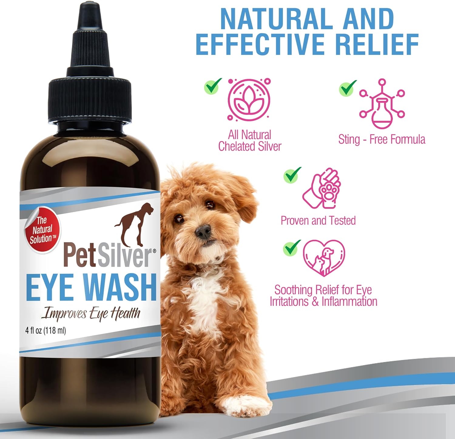 • SIMPLE APPLICATION FOR DAILY USE: Administer PetSilver Eye Wash up to three times a day as needed or directed by your veterinarian. To use the dog eye wash solution, secure your pet and gently hold their eyelids open. Apply several drops to the inner corner of both eyes, allowing your pet to blink to distribute the wash. Blot any excess solution from their fur or let it air dry. For active pets, it may be helpful to get assistance.