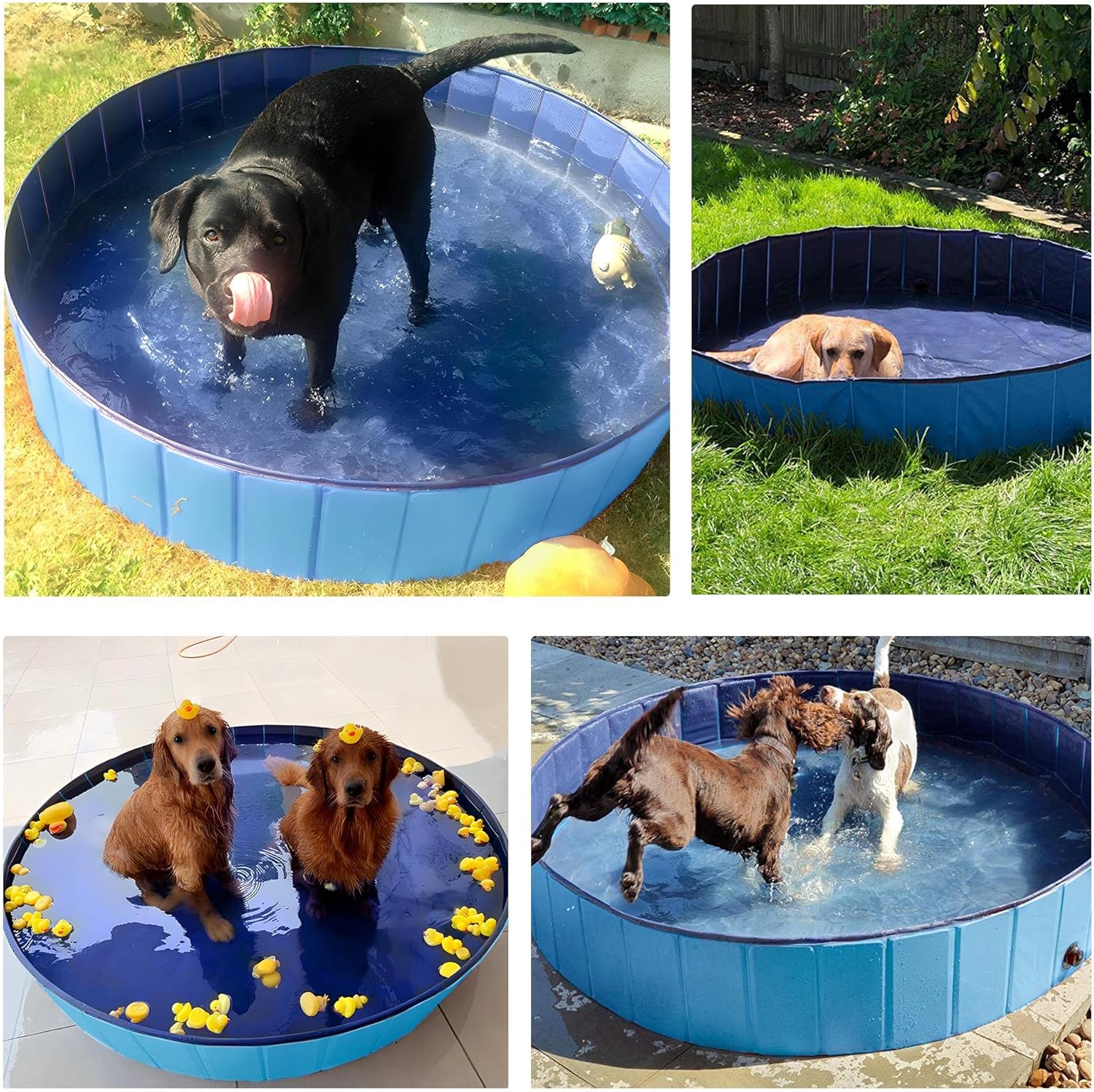 • Easy to Use: The simple structure makes this foldable pool simple to use. You can set it up quickly and easily without inflating it. Durable PP boards and PVC covering make this pet pool easy to open and fold