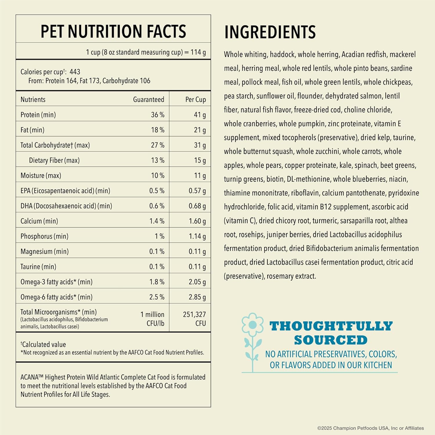 • One (1) 4 lb bag of ACANA Highest Protein* Wild Atlantic Saltwater Fish with Freeze-Dried Liver Dry Cat Food
