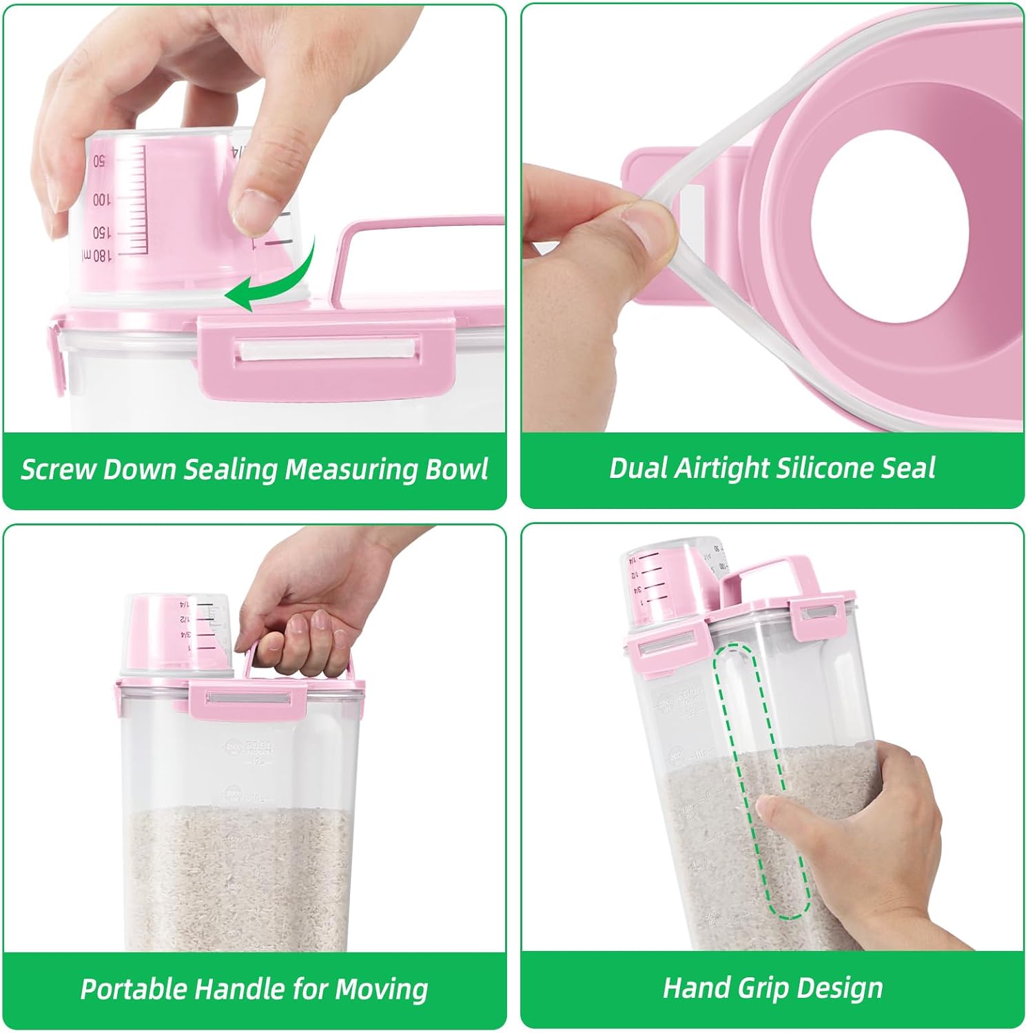 • MESS-FREE RICE DISPENSER: The cereal storage container features a pouring spout makes it a breeze to dispense your ingredients. Its ergonomic design offers a comfortable grip for easy, single-handed pouring