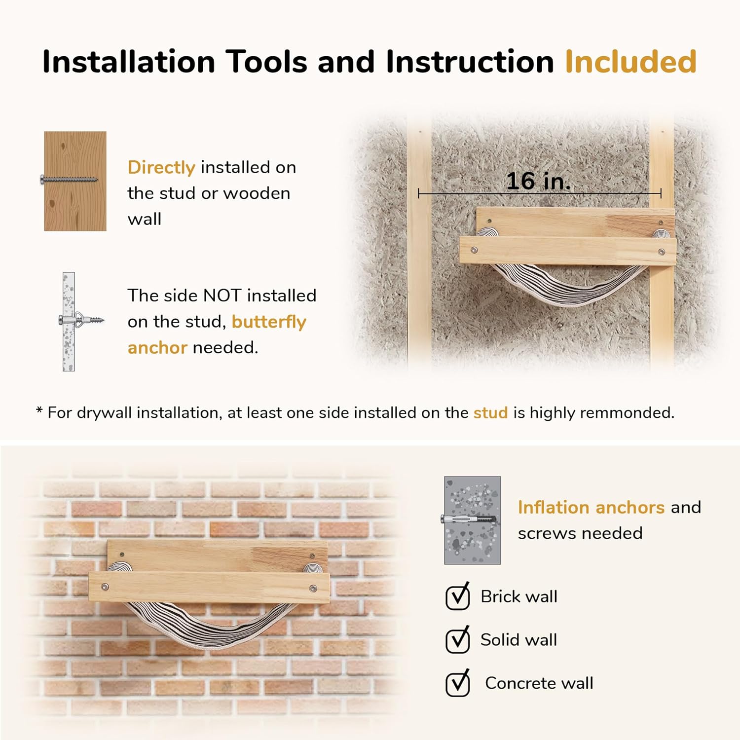 • Save Space - The cat wall furniture has ideal size for most cats to sleep or have a nap, its wall mounted design fully use vertical space. In the limited home space, leaving room for cats to rest and play.